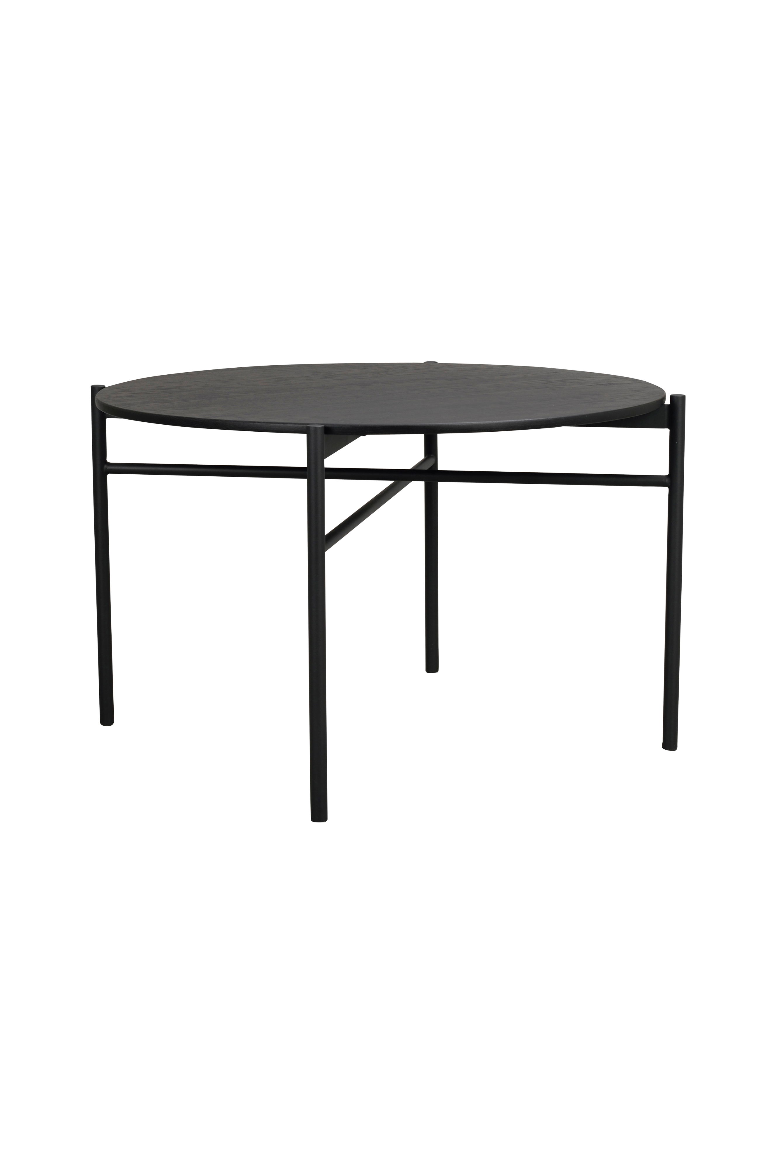 Stilfullt runt matbord i modern design. Skye har bordsskiva i borstad svartmålad ek faner och ben i pulverlackerad svart metall. Skye passar utmärkt i det moderna hemmet, i köket eller matsalen. Till matbordet passar de flesta stolar. Det ingår även soffbord i serien för en matchande helhet i hemmet.