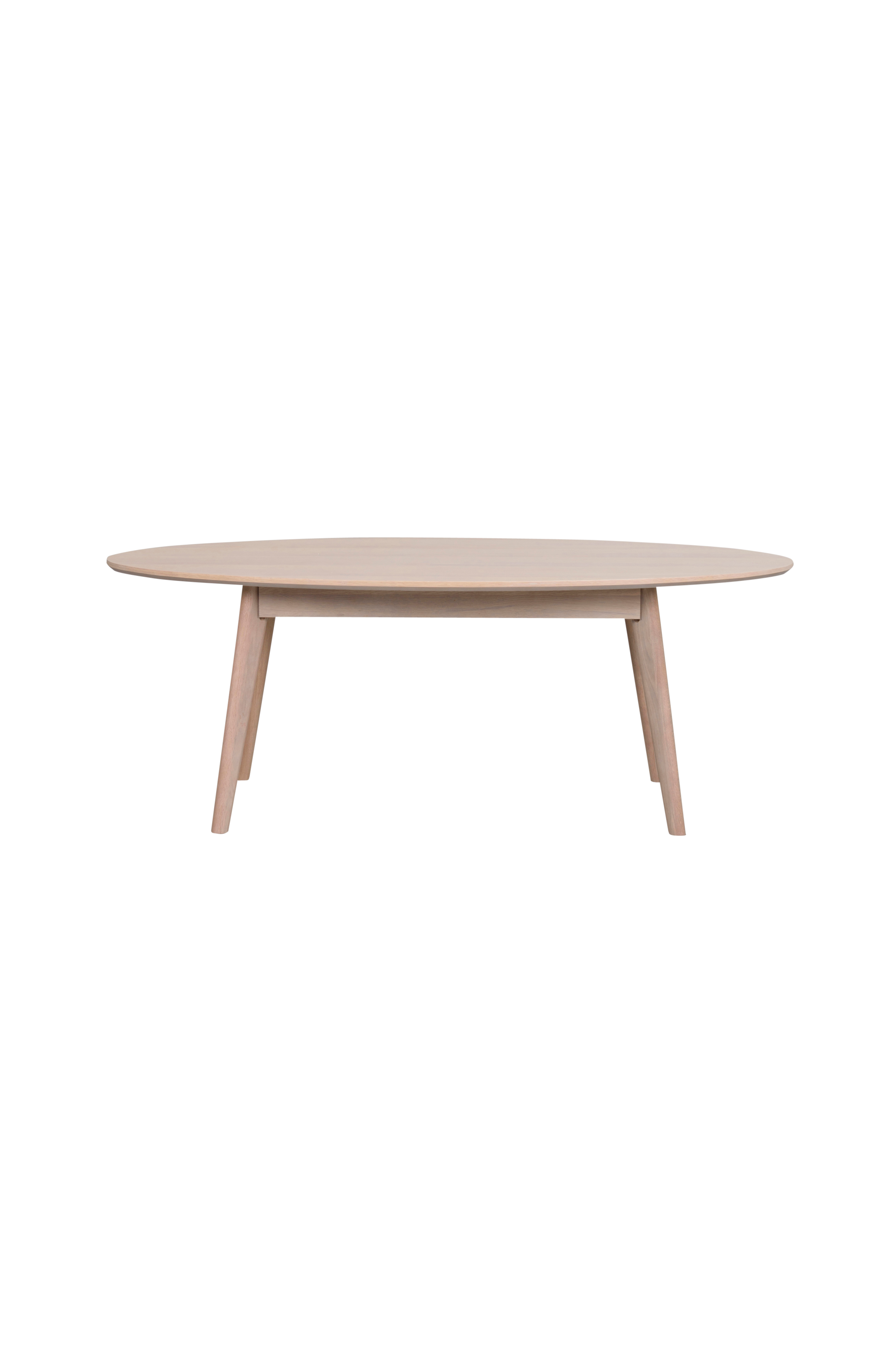 Yumi soffbord i vitpigmenterad ek. Längd 130 cm, bredd 65 cm, höjd 48 cm. Ovalt soffbord med stilren design och retroinspiration. Bordets skiva är i högkvalitativt faner samt ben och sarg i massiv ek. Soffbordet ingår i vår serie Yumi och är designad av oss på Rowico.