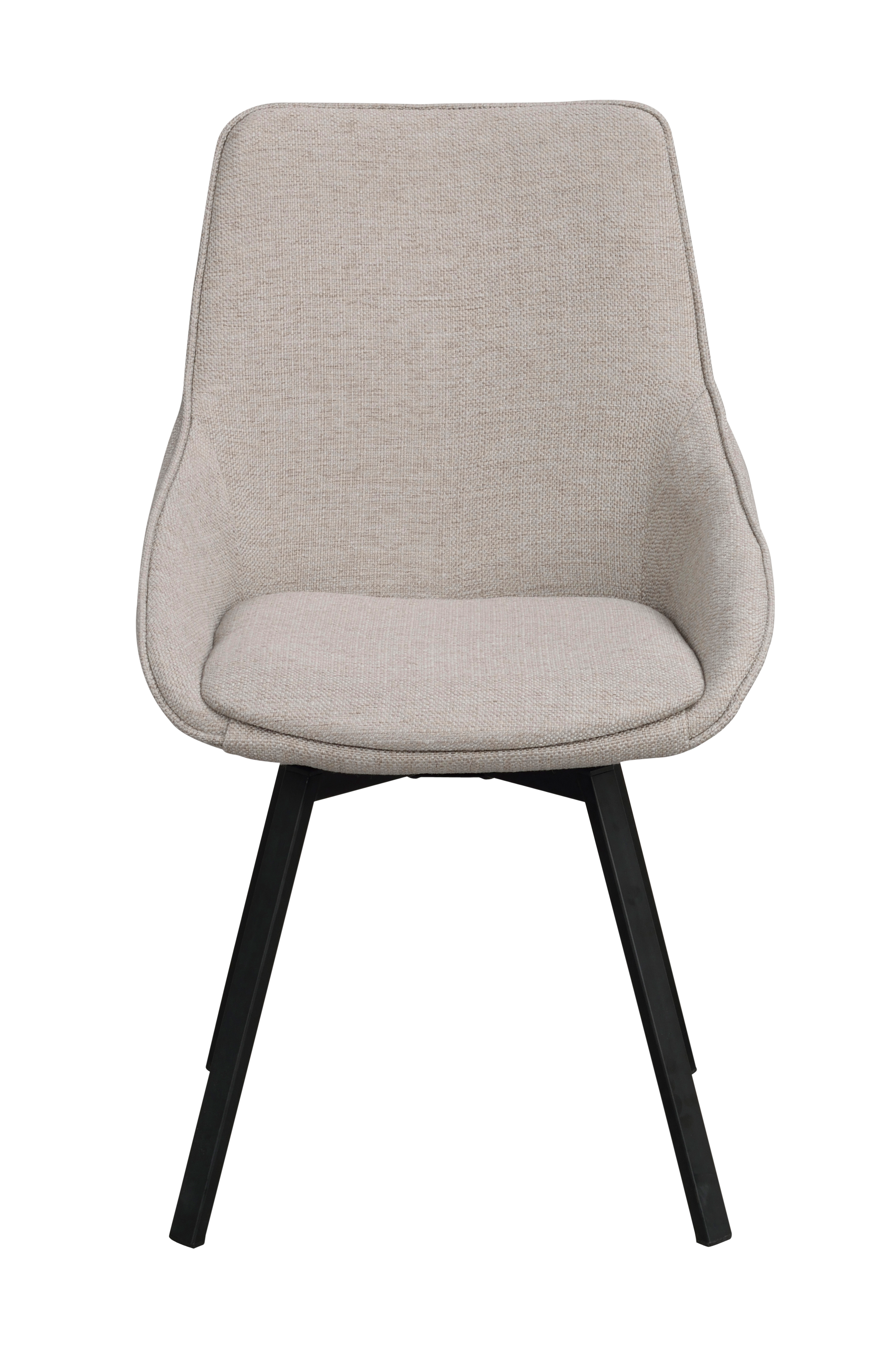 Snurrstol i tyg med ben i pulverlackad svart metall. Stoppad sits i kupad design. Stoppning av polyeterskum. En snygg och stilren stol som är designad av Rowico. Bredd 51 cm, djup 57 cm, sitthöjd 47 cm och totalhöjd 87 cm. Montera själv.