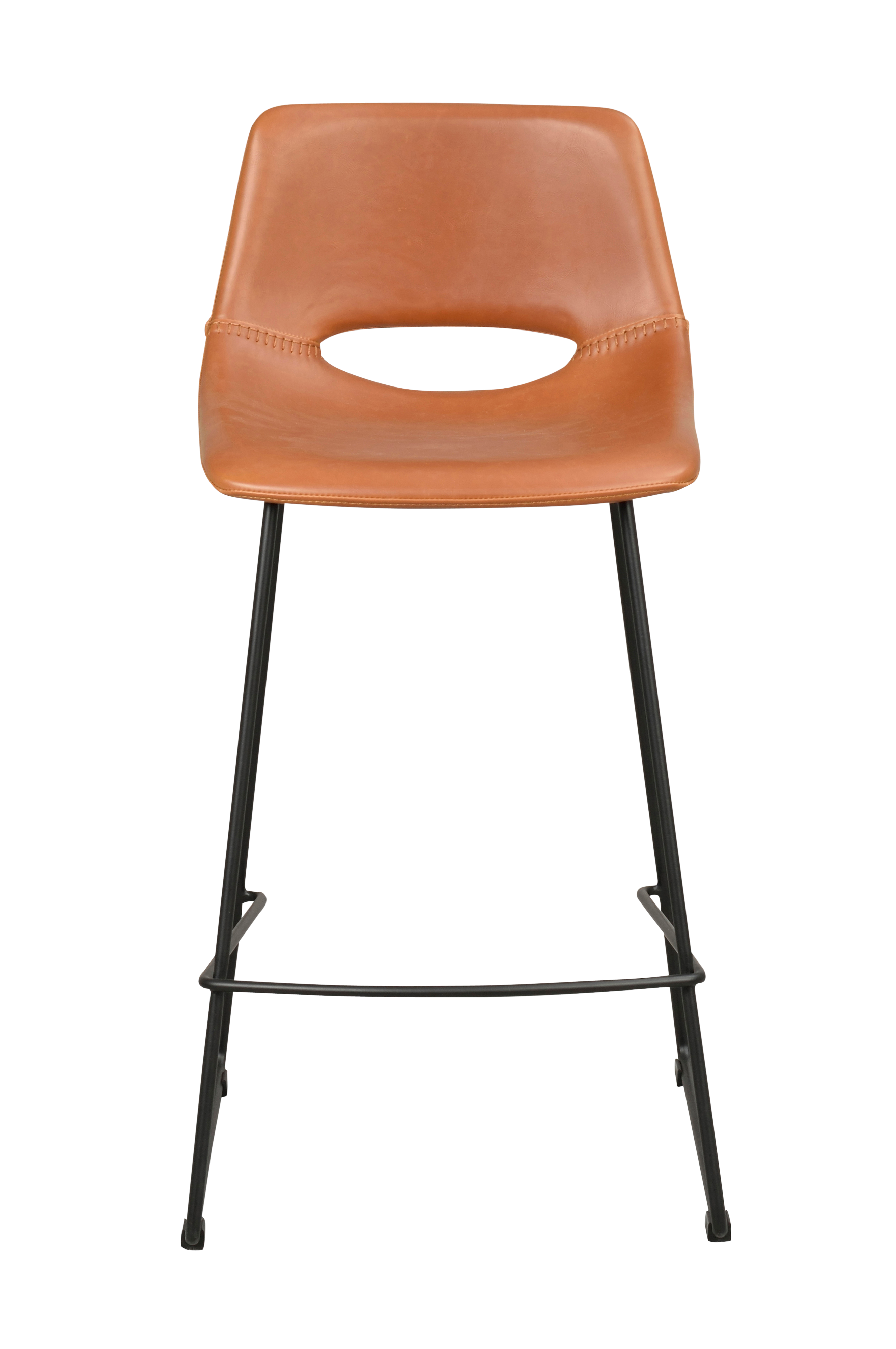 Stilsäker barstol med dekorativ öppning i ryggen. Sits i konstläder och smala ben i pulverlackerad metall. Barstolen ingår i vår serie Manning och finns i fler färger. Bredd 45 cm, djup 49 cm, sitthöjd 65 cm, totalhöjd 89 cm. Montera själv.