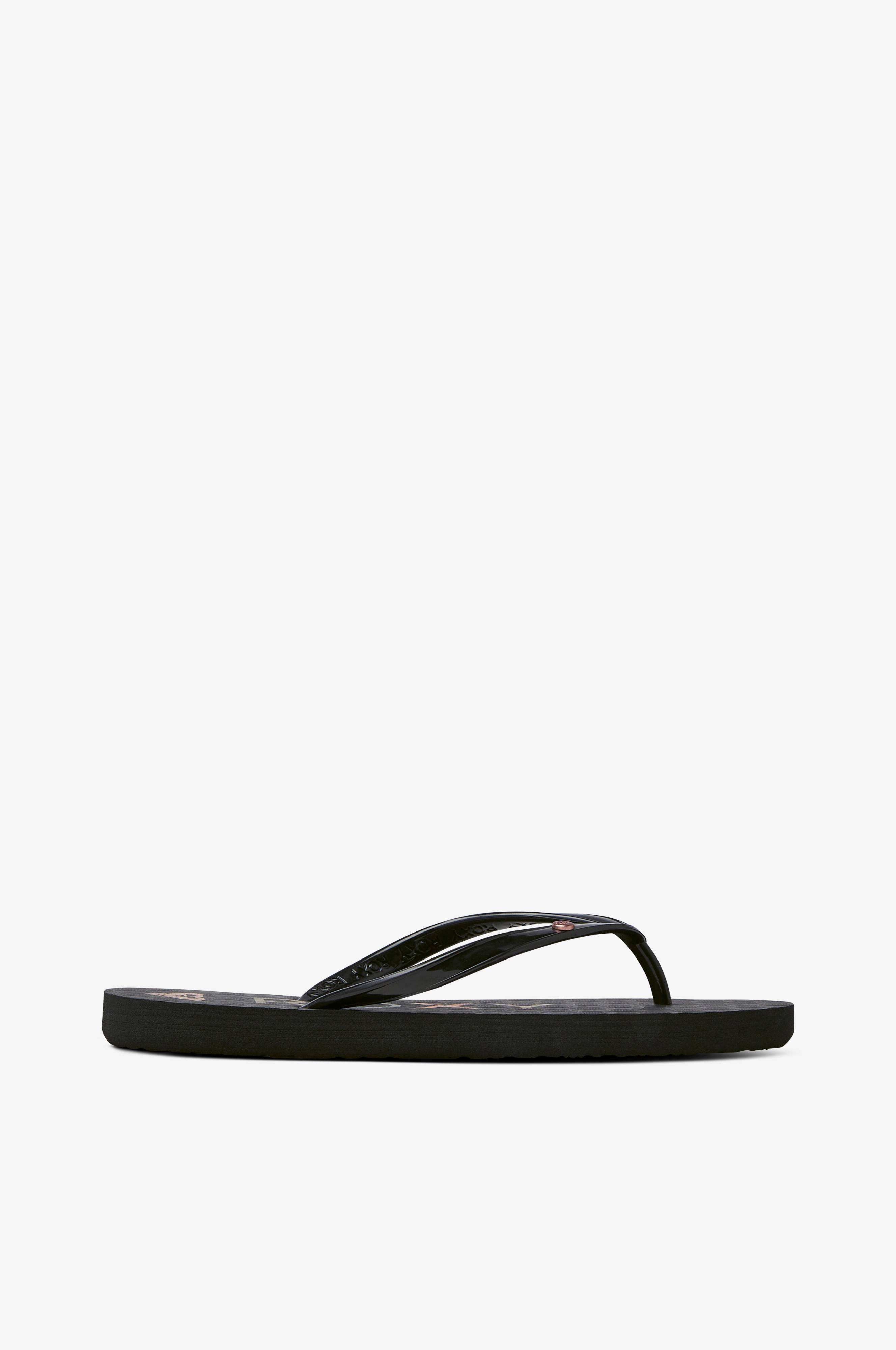 Flip-Flop med smala remmar i gummi med liten Roxy-logo i metall. Roxy-tryck på sulan.