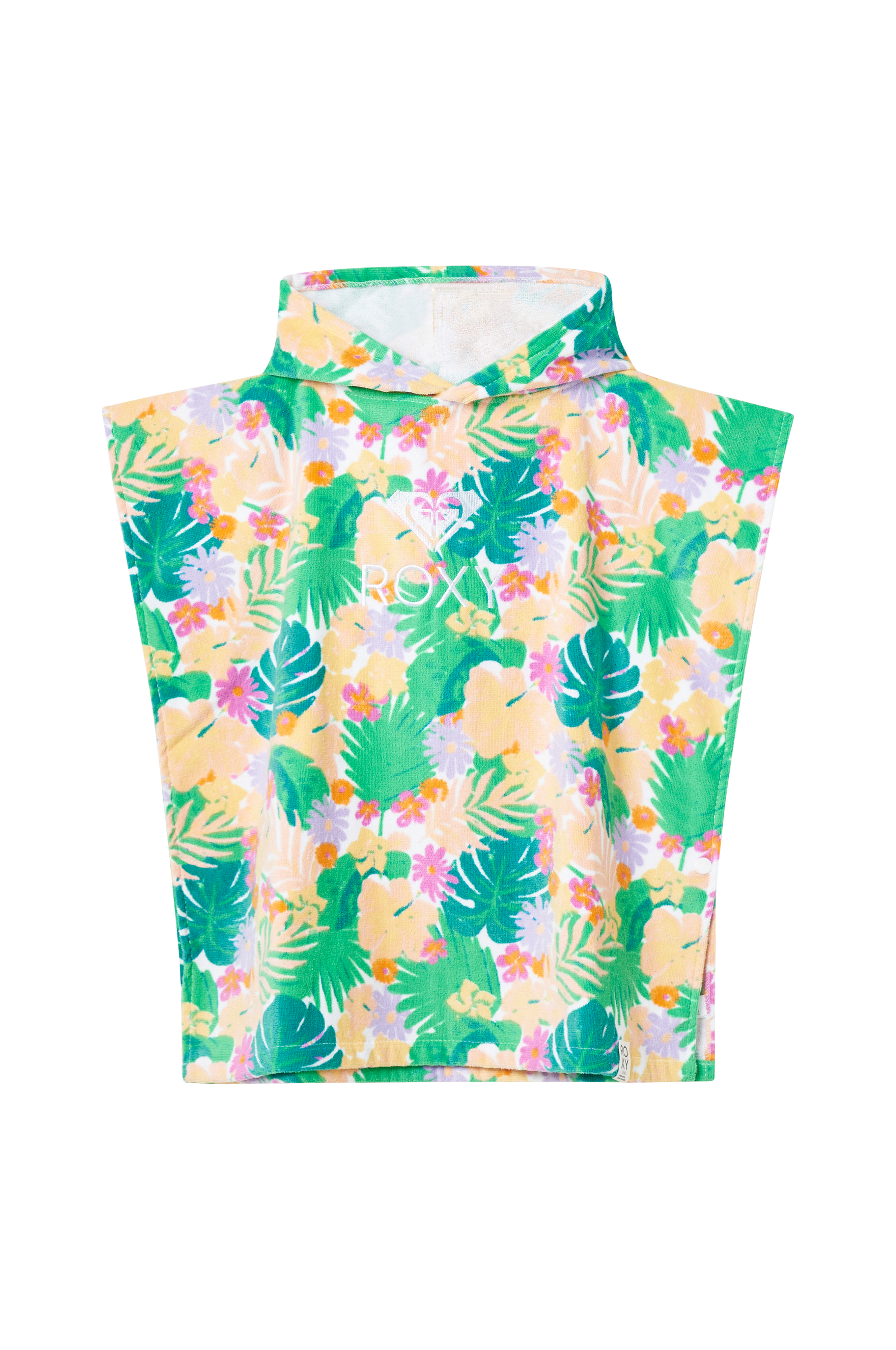 Poncho i mjuk frotté med huva. Tryckknappar längs sidorna och broderad logga fram. Längd ca 57 cm.