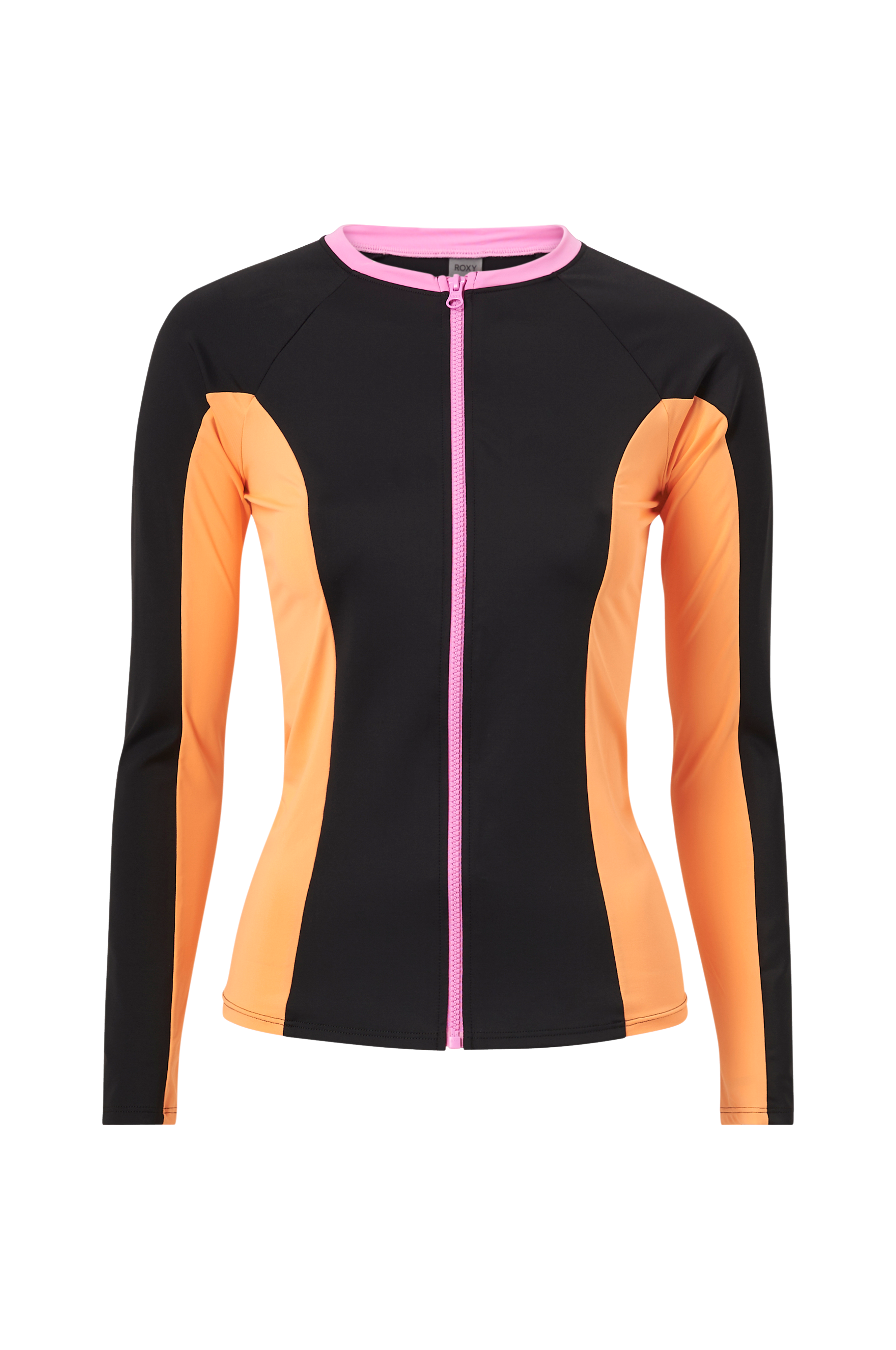 Solskyddstopp / surftröja som ger ett behagligt och säkert skydd mot solen. Tillverkad i tunn och smidig stretchtrikå som torkar snabbt. Solskyddsfaktor UPF 50+. Hellång dragkedja.