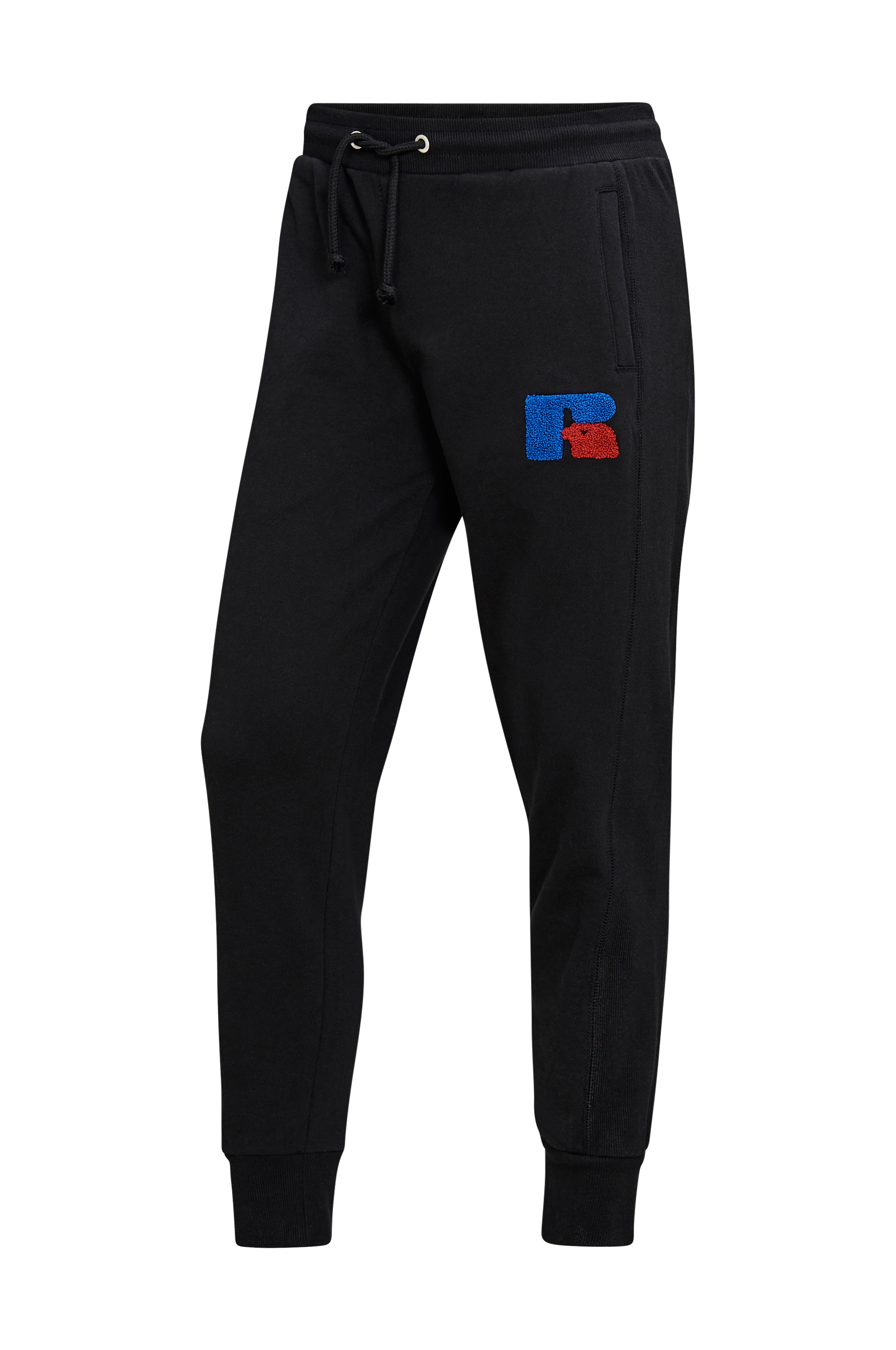 Joggingbyxor RU Austin-Cuffed Jog Chen Emb från Russell Athletic med logo i frotté på höften. Ribbad, elastisk linning med dragsko. Två sidfickor och en bakficka. Ribbade paneler längs sidorna på benen och ribbade muddar i benslut.