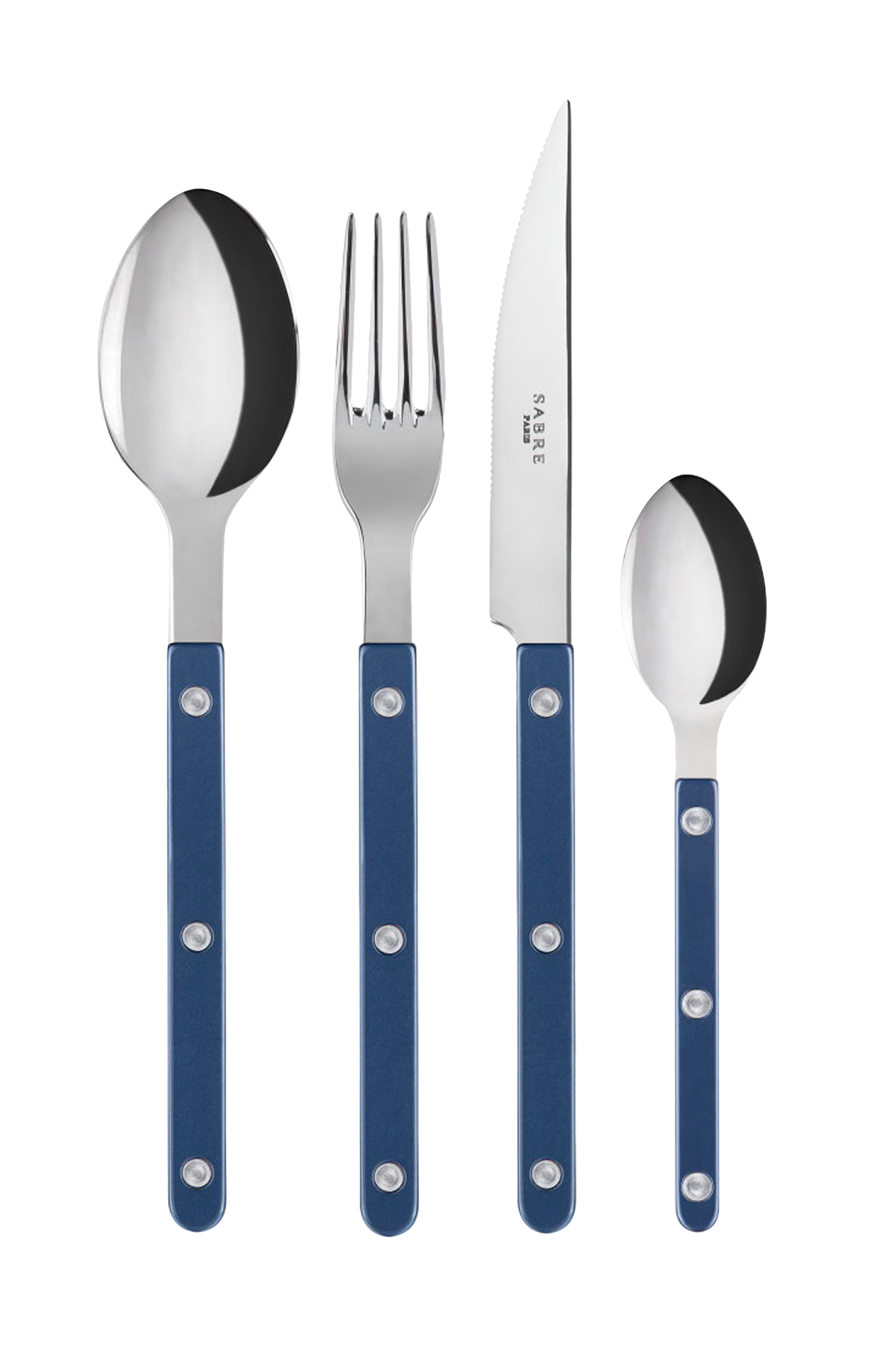 Sabre 4-delade set består av en middagsgaffel, en middagskniv, en tesked och en dessertsked. Denna 4-delade uppsättning erbjuder den perfekta kombinationen för dina dagliga måltider. Finns även som en del av ett hushållsbestickset med 24 delar.