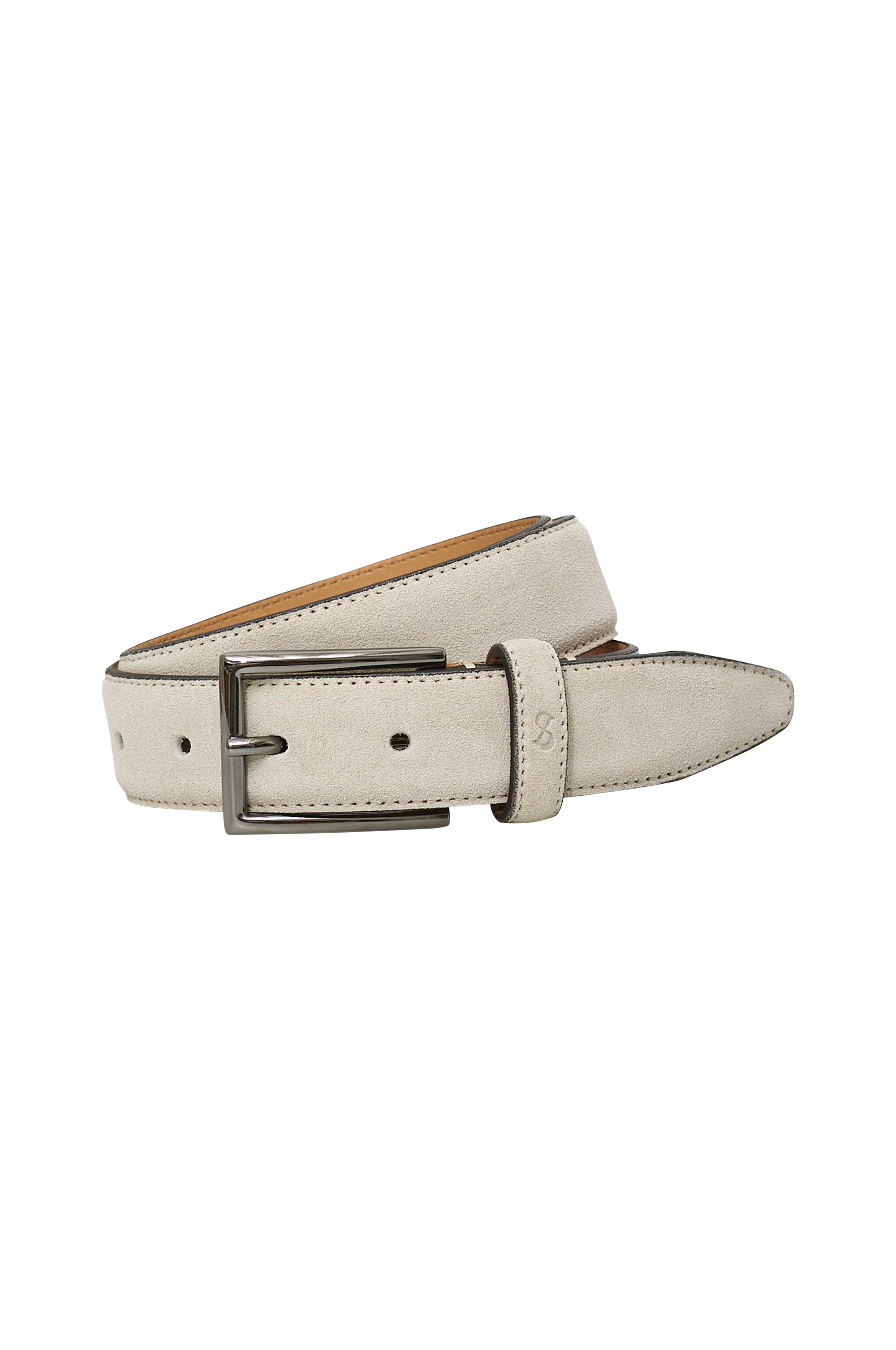 Bälte i mjuk mocka med blankt, rektangulärt spänne. Bredd ca 3 cm.