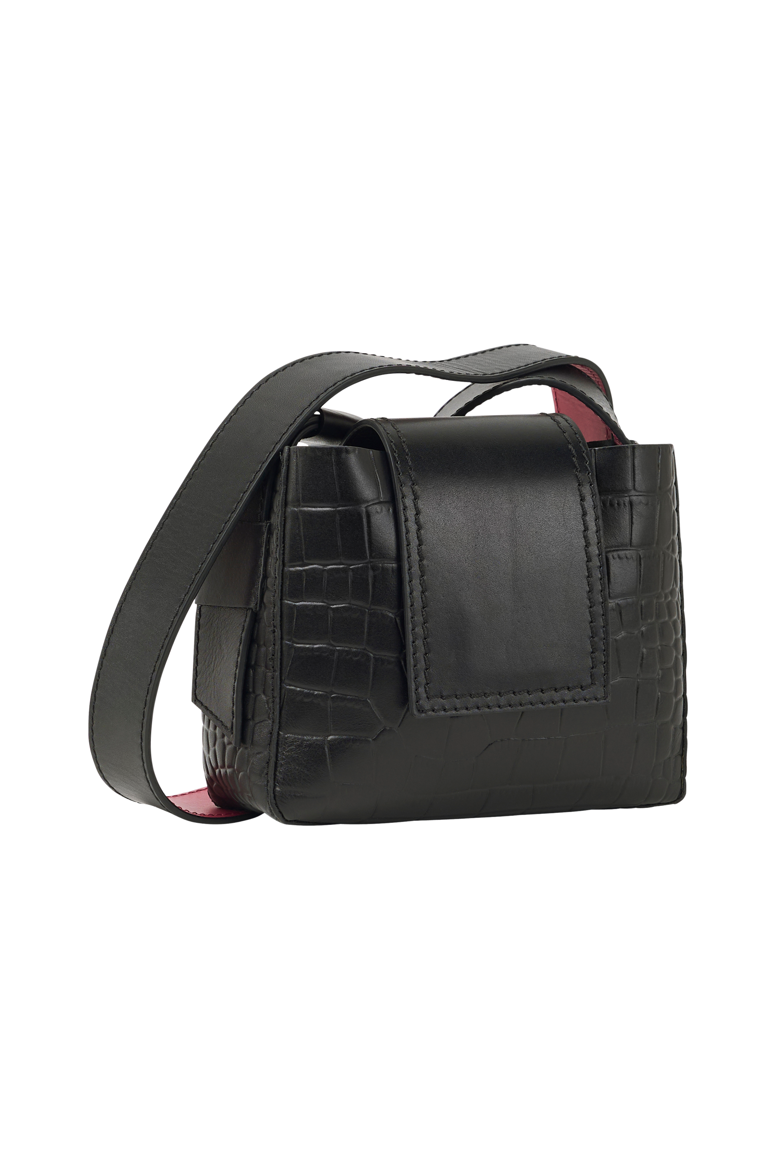 • Liten axelremsväska i krokodilmönstrat läder• Bred rem med magnetlås upptill• Ofodrad insida• Två öppna fack• Ett kortfack• Ett fack med dragkedja• Justerbar, tvåfärgad axelrem• Mått: B 16 x H 13 x D 6,5 cm
