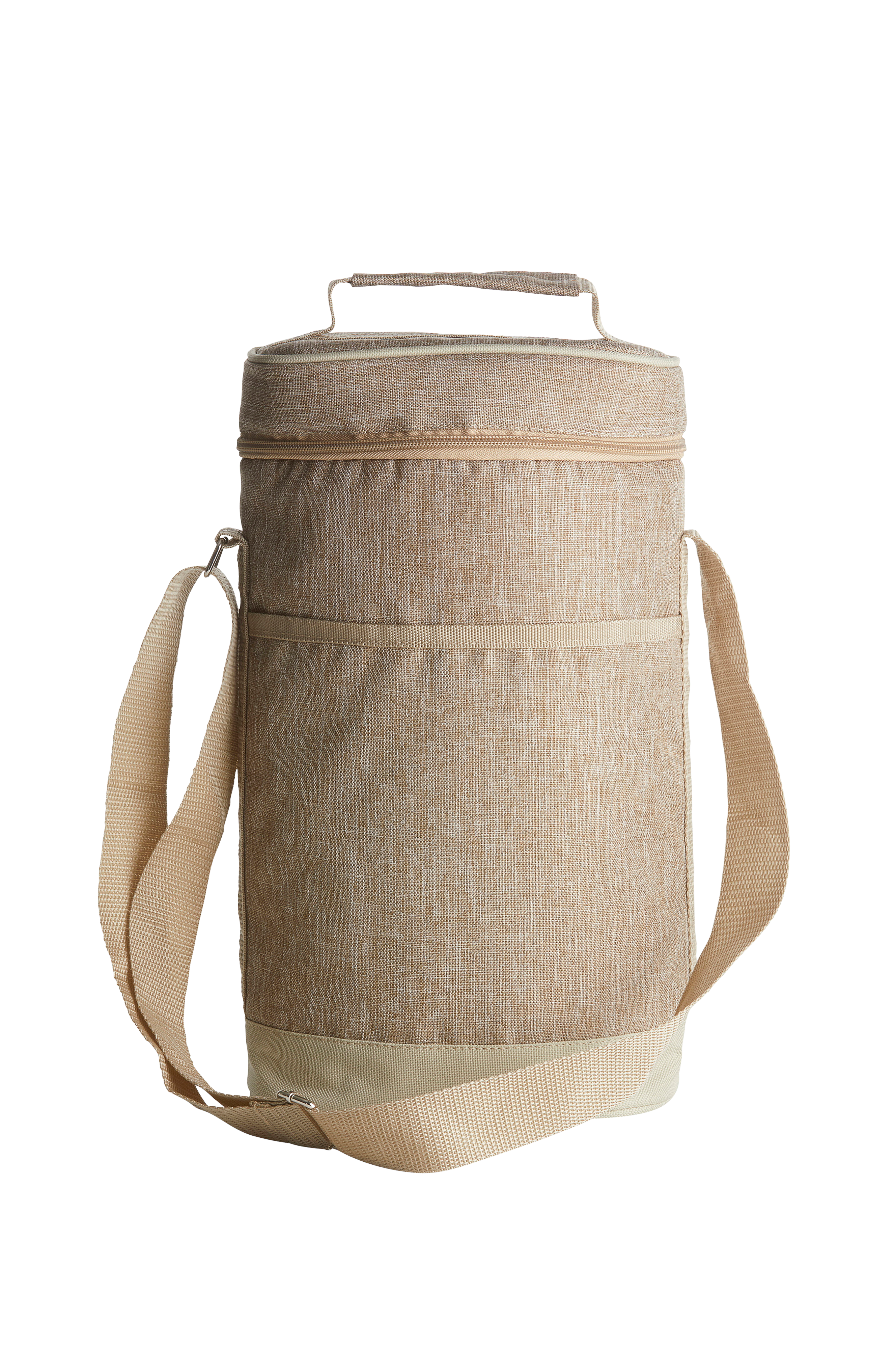 Praktisk, stilren kylväska. En lite högre modell som rymmer exempelvis två vinflaskor eller 1,5 liter PET-flaskor. Utrustad med både bärhandtag och justerbar axelrem.