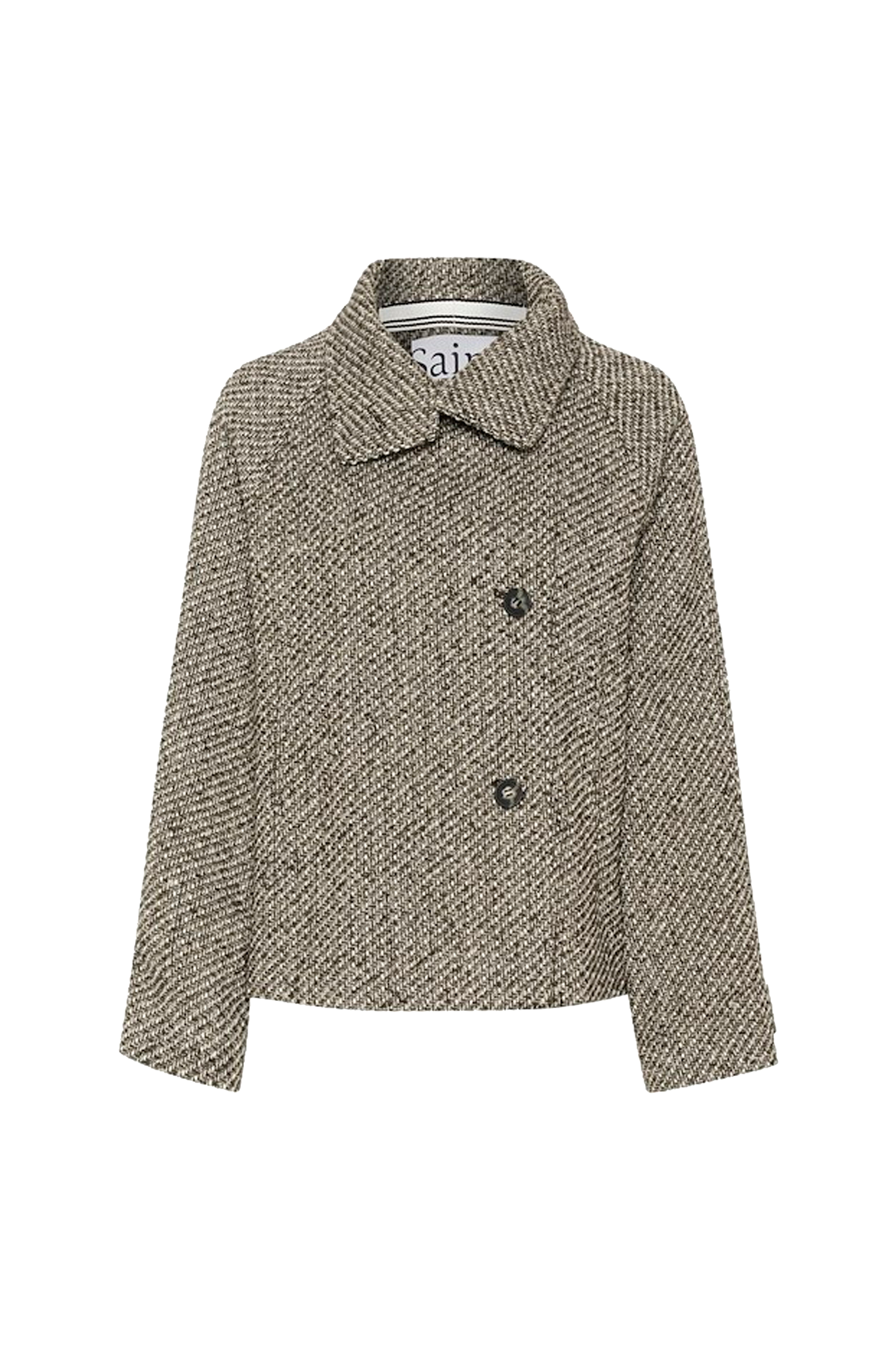 • Kort kappa med lätt struktur• Knäppbar skorstenskrage• Knappstängning• Knappdetaljer i ärmsluten• Veckad detalj på ryggen• Vävt, randigt foder• Längd: 60 cm i storlek S