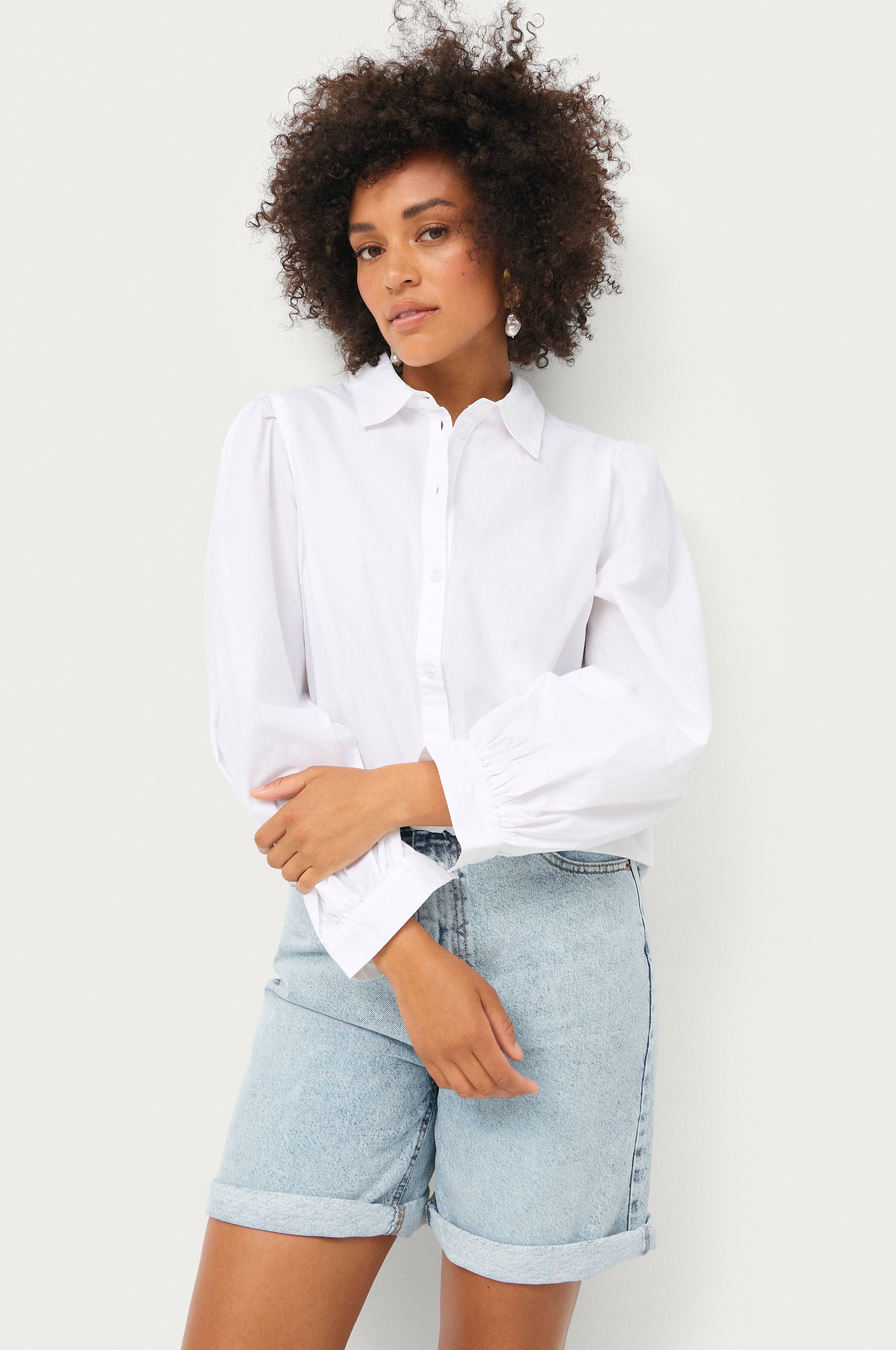 • Knappar fram• Långa ballongärmar med manschett• Rynk på axlarna
