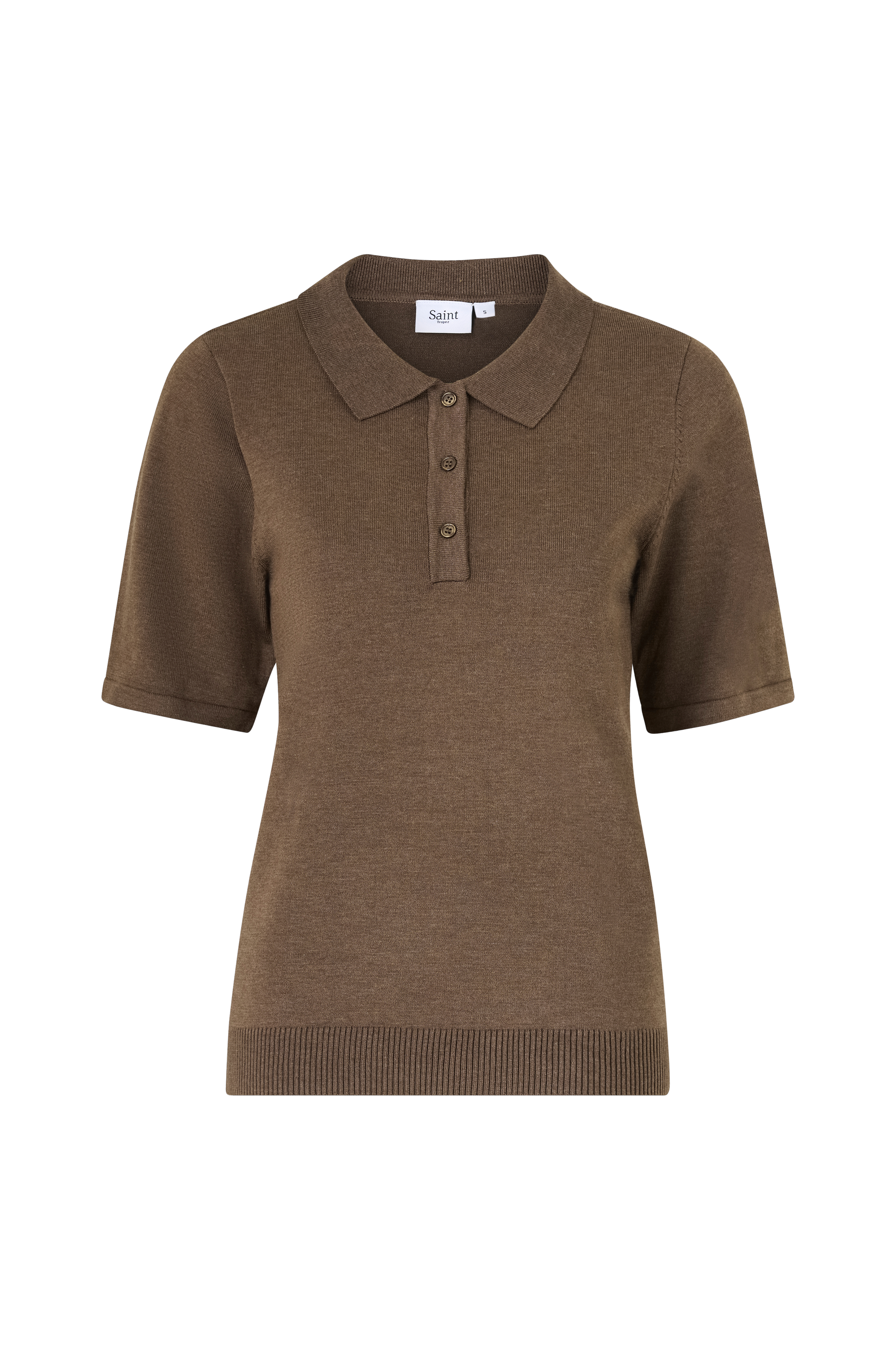 • Finstickad tröja med korta ärmar• Ribbad krage• Tre knappar