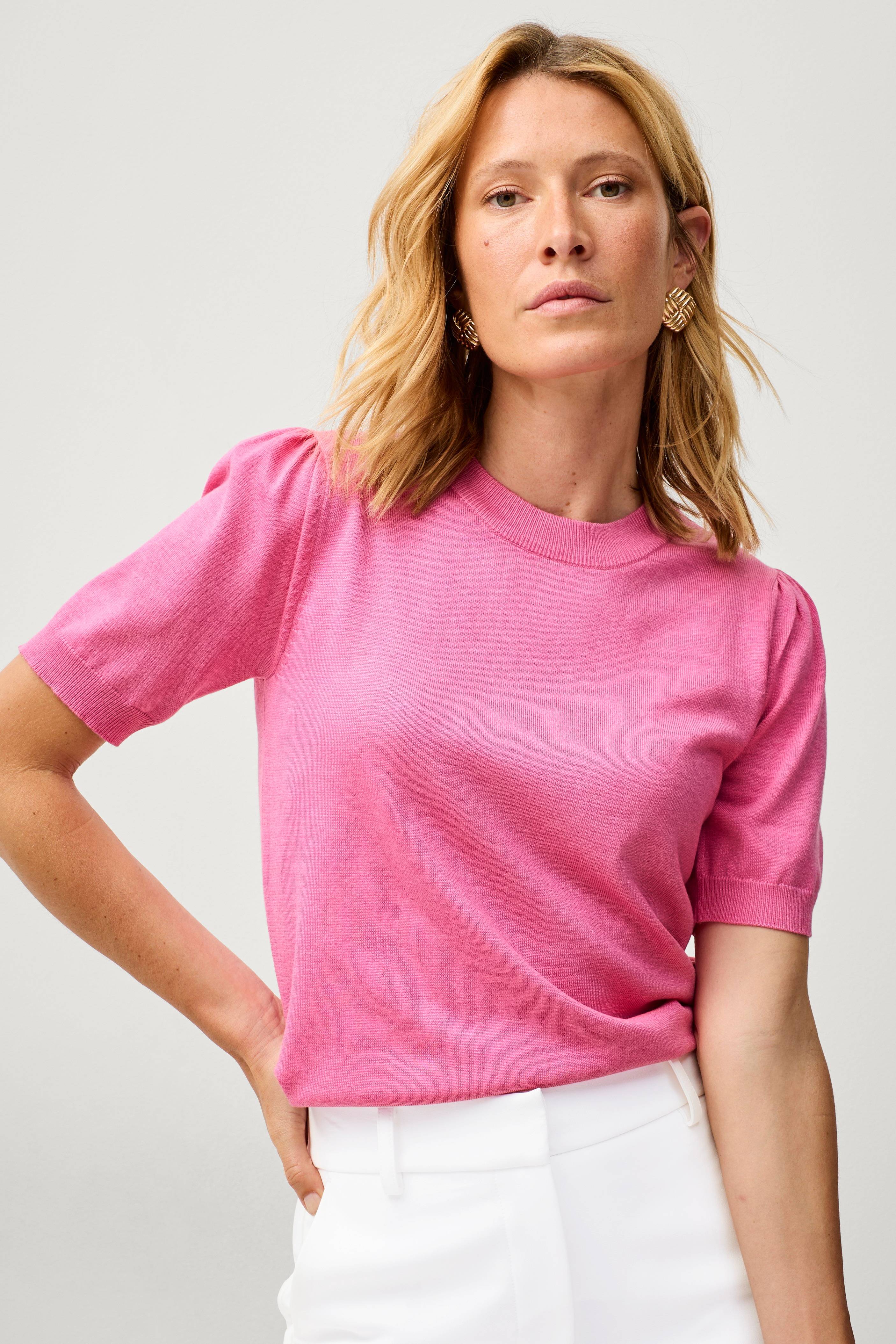 • Finstickad tröja• Rund, ribbad halsringning• Kort ärm med ribbad kant• Ribbad nederkant