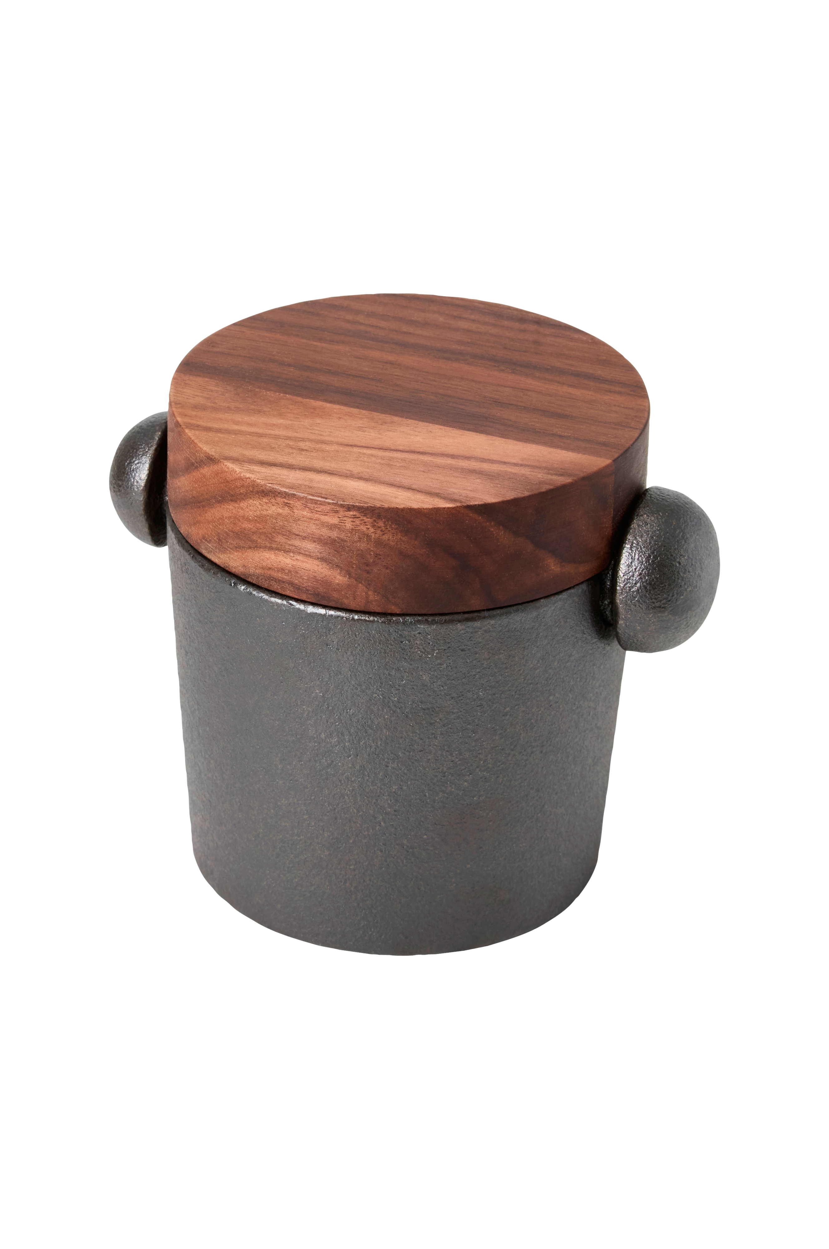 På morteln och stöten sitter ett vackert lock i valnöt som också är mångsidigt. Vrid på locket och det blir en perfekt hållare för slaget utan att det smutsar ner arbetsbänken. Locket kan också användas som ett vackert serveringsfat för din nymalda kryddblandning.