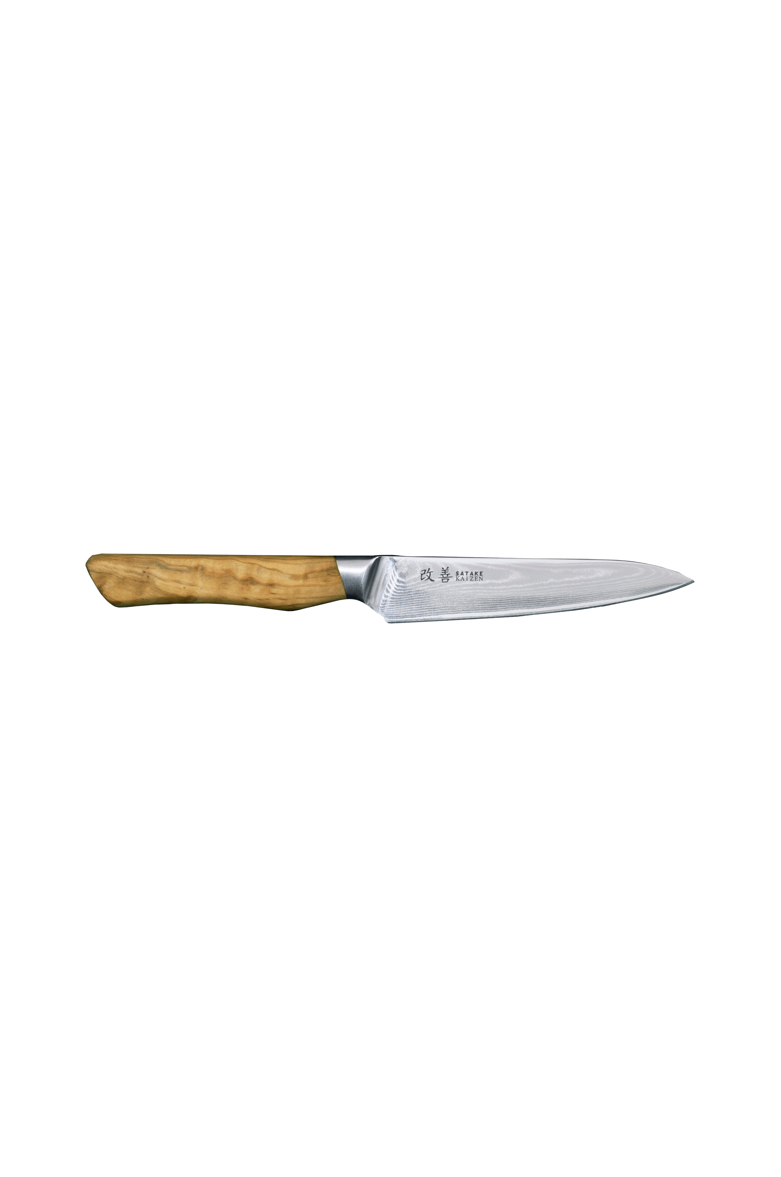 Satake kaizen är en premiumserie från knivarnas huvudstad seki city, japan. Knivarna har ett skaft av oregelbundet ådrat olivträ och ett tunt och elegant 67-lagers damascusblad, 66 lager supportstål och en kärna av ytterst kvalitativt mvs10cob-stål.