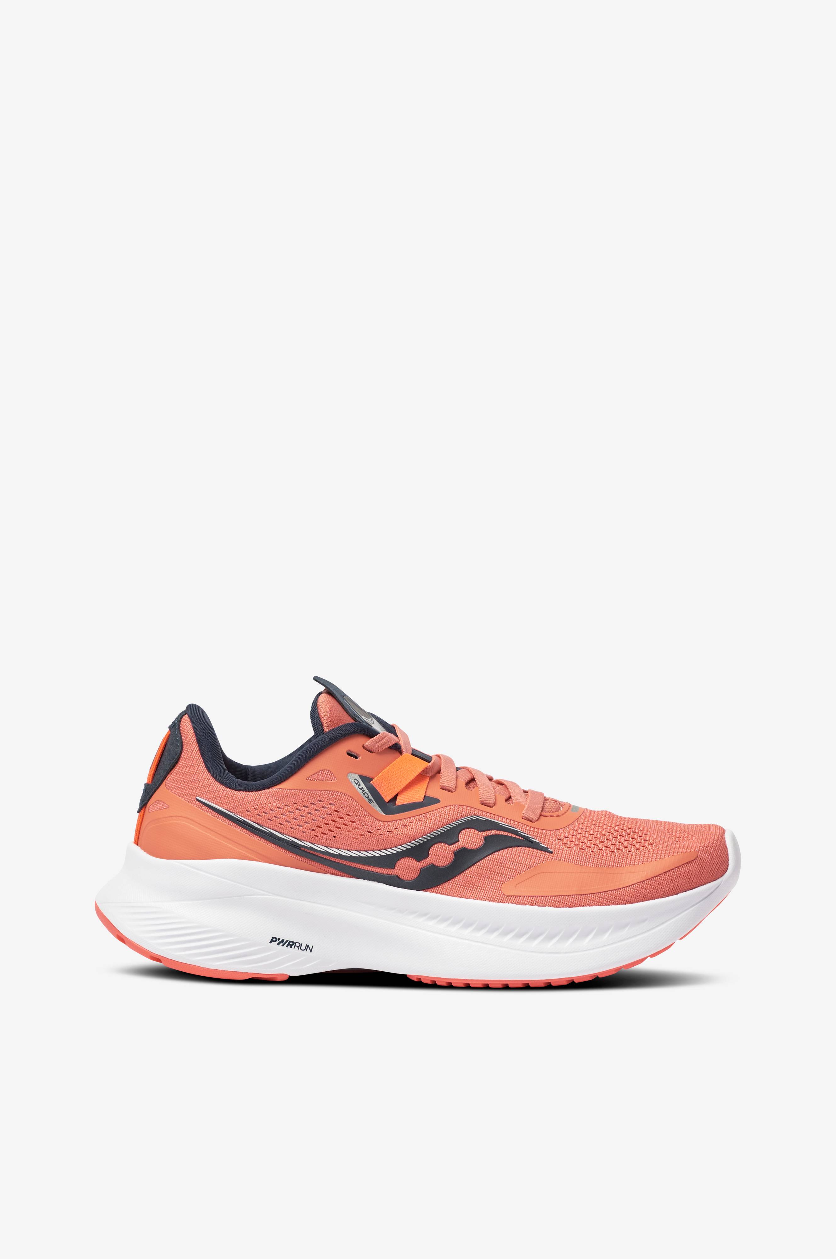 Guide 15 passar för löparen som söker en lätt pronationssko med maximal löpkänsla. Mellansulan är tillverkad i PWRRUN, och i kombination med toppsulan i PWRRUN+ ges en utmärkt stötdämpning med högsta möjliga energiåtergivning. FORMFIT-konstruktionen ger en optimal passform runtom hela skon. Ovandel i ventilerande, sömlös mesh med stabiliserande 3D-printad struktur. Drop 8 mm.