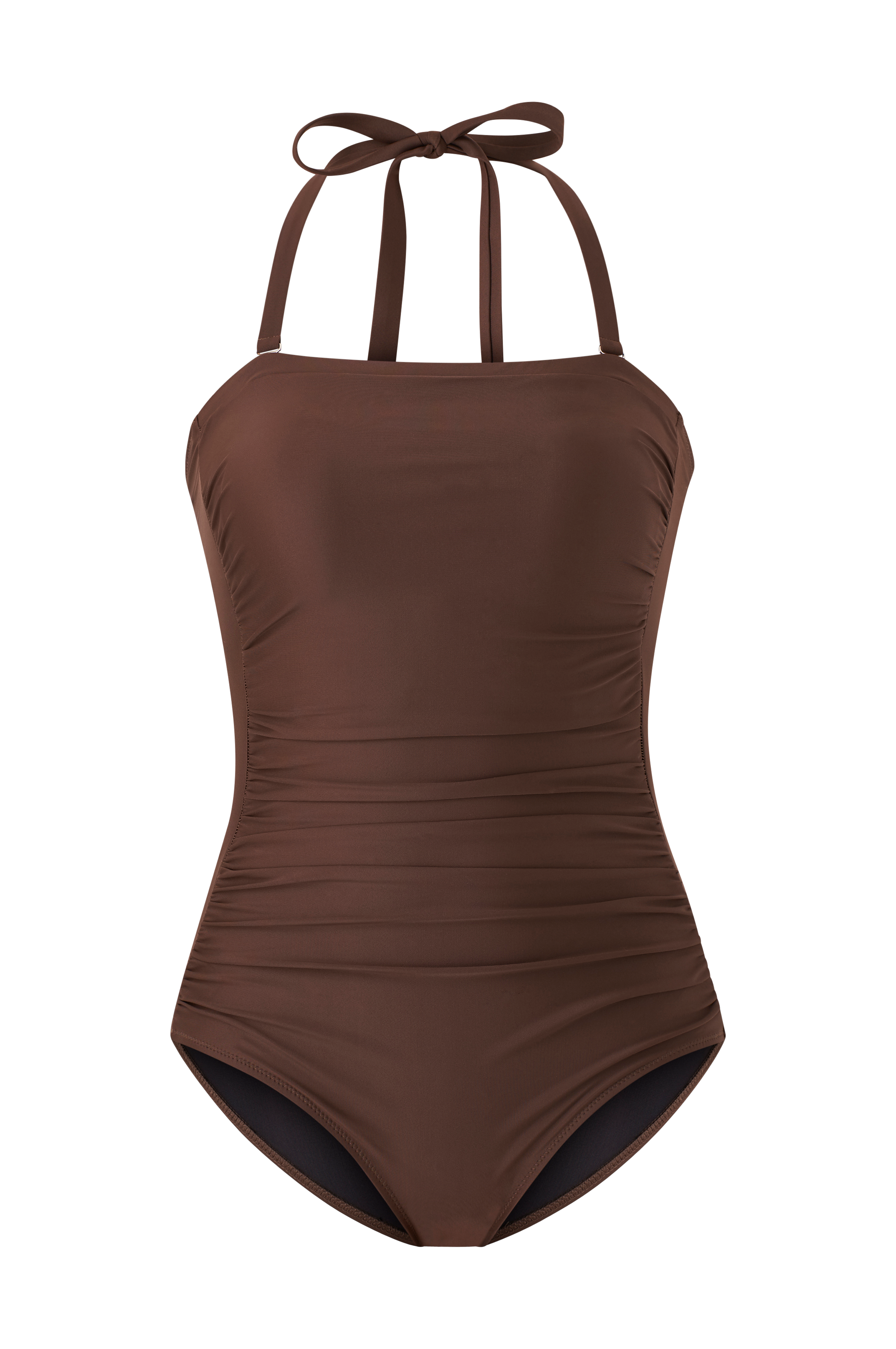 • Draperad design • Kupor med tunn vaddering • Avtagbart halterneckband • Fodrad • Produkten innehåller ECONYL®, ett mer hållbart material som består av 100 % regenererad nylonfiber från återvunna fisknät och annat nylonavfall från havet och industrin. Det återanvända ECONYL®-garnet kan återvinnas, återskapas och omformas om och om igen.
