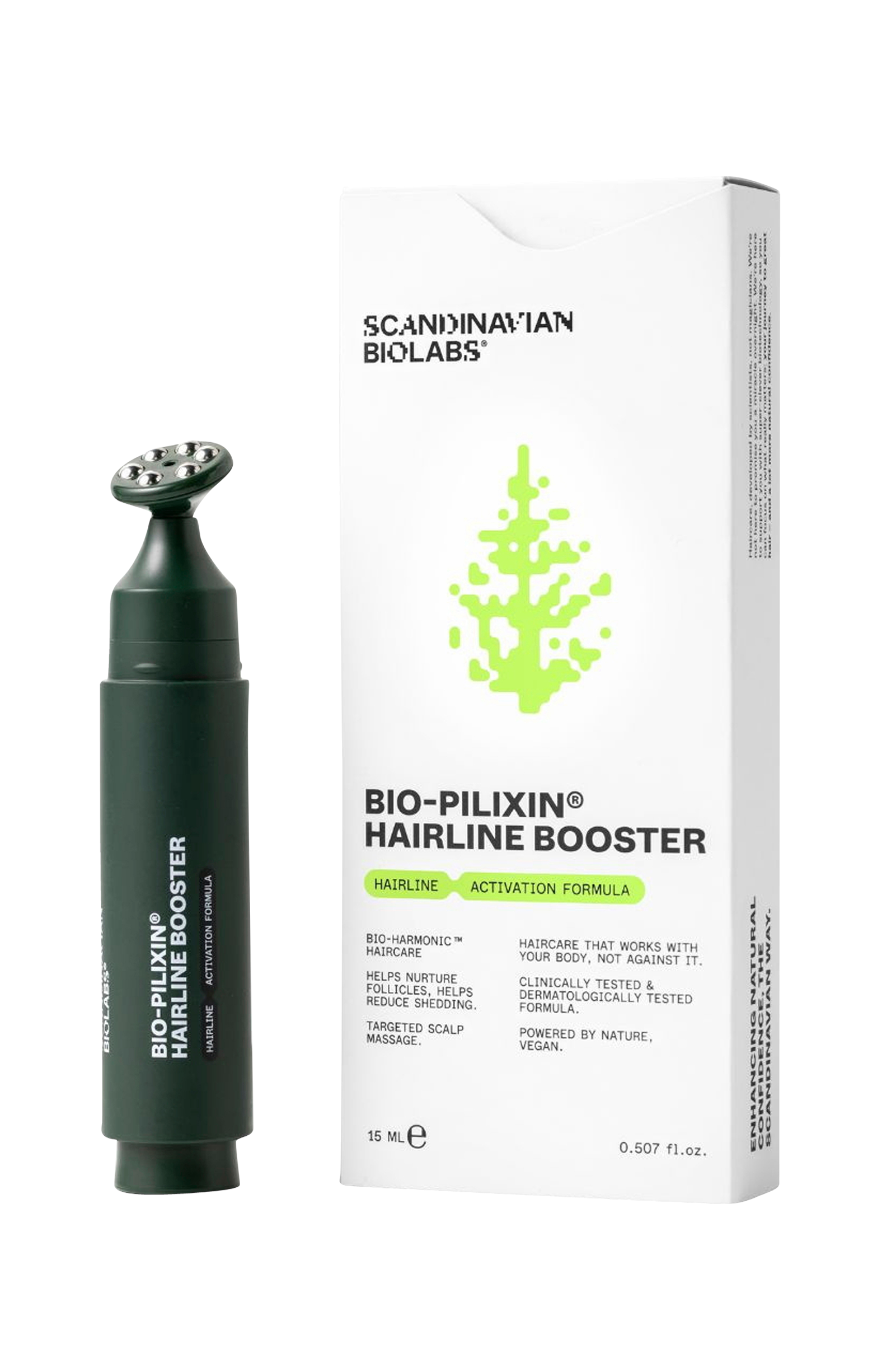 Bio-Pilixin® Hairline Booster är en avancerad leave-on-behandling för dem som upplever tidiga tecken på tillbakadragande hairline, tunnare tinningar eller ökat håravfall. Den påfyllningsbara pennan gör appliceringen snabb och exakt längs hairline.