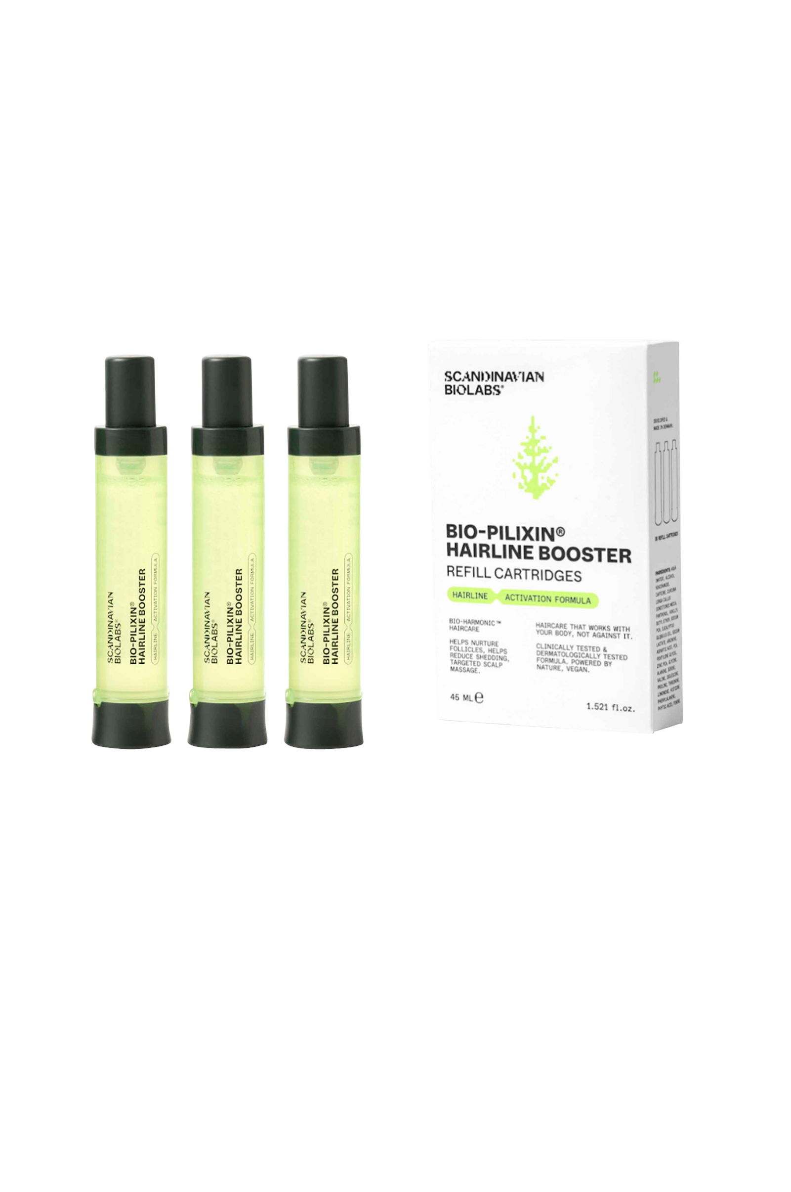 Bio-Pilixin® Hairline Booster är en avancerad leave-on-behandling för dem som upplever tidiga tecken på ett tillbakadraget hårfäste, tunnare tinningar eller ökat håravfall. Den påfyllningsbara pennan gör appliceringen snabb och exakt längs hårfästet.
