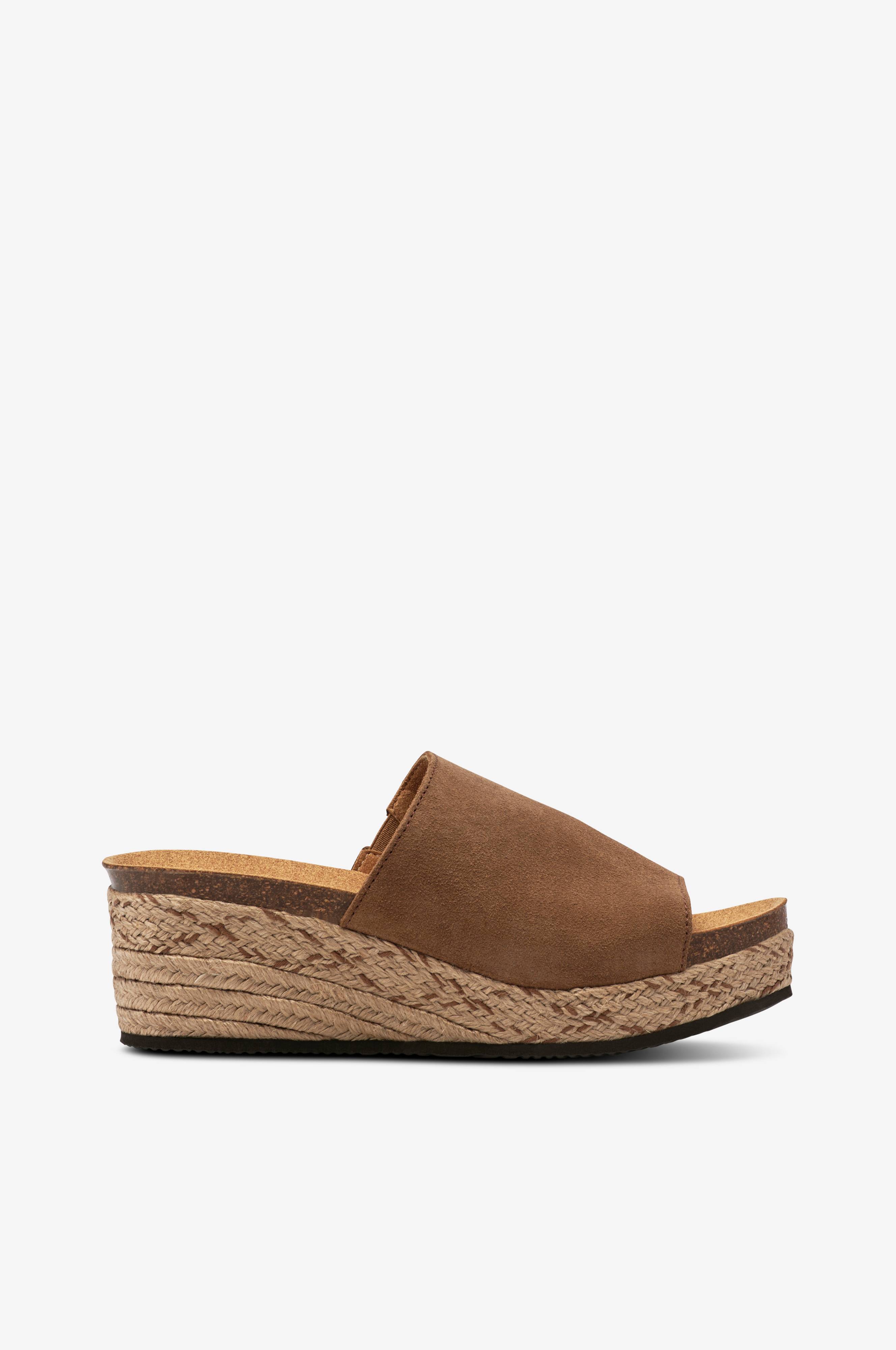 Smidiga slip on-sandaler med repklädd kilklack. Fotbädden är utformad med Scholls unika Bioprint-teknologi. Med kork och naturgummi ser den till att foten både får röra sig naturligt samtidigt som den hålls i rätt position. Dessutom har fotbädden ett överdrag av mocka för skön och mjuk komfort mot foten. Klackhöjd ca 6 cm.