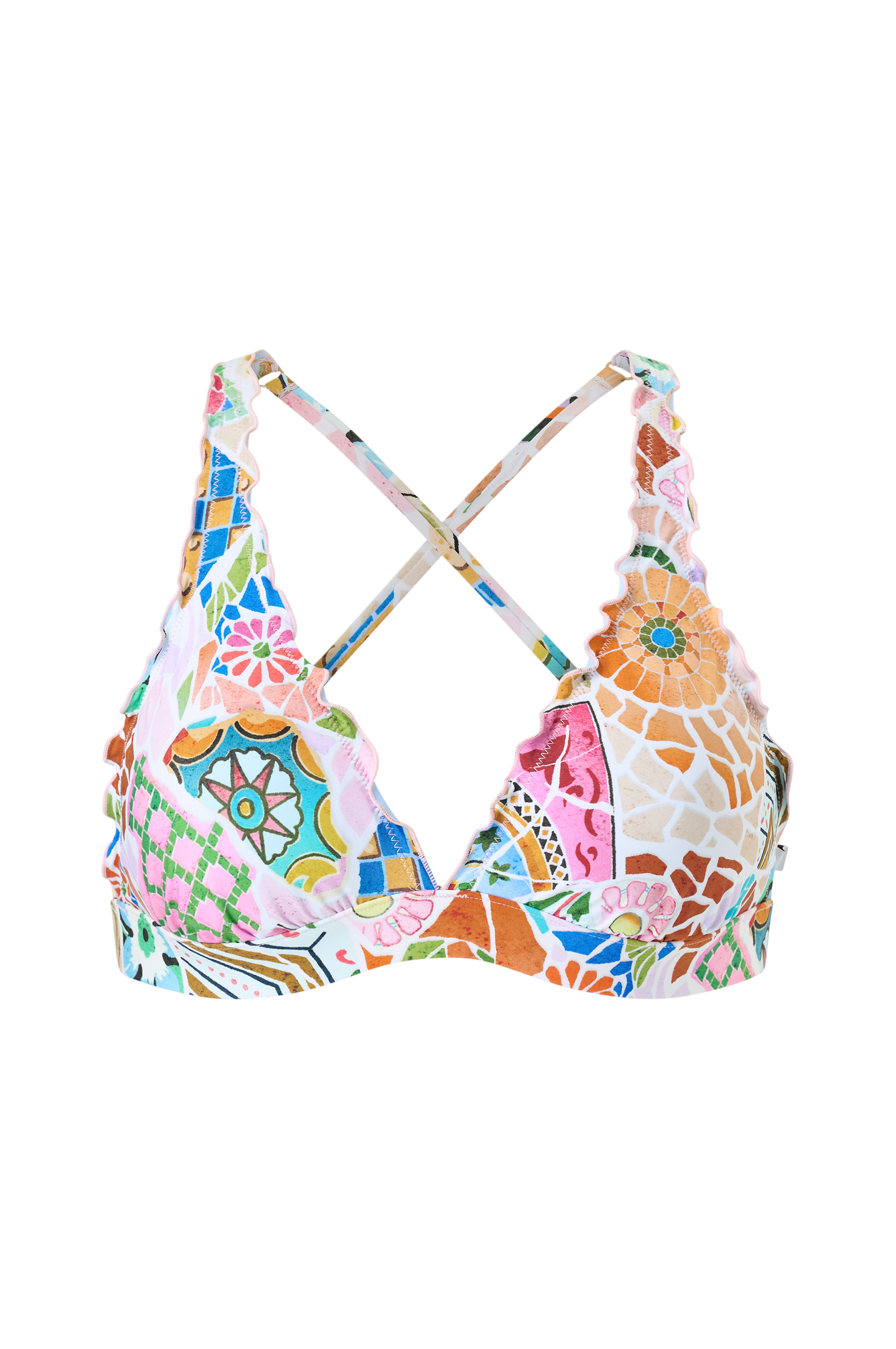 • Vadderad bikini-bh• Vågiga kanter• Korsade axelband• Knytning i ryggen