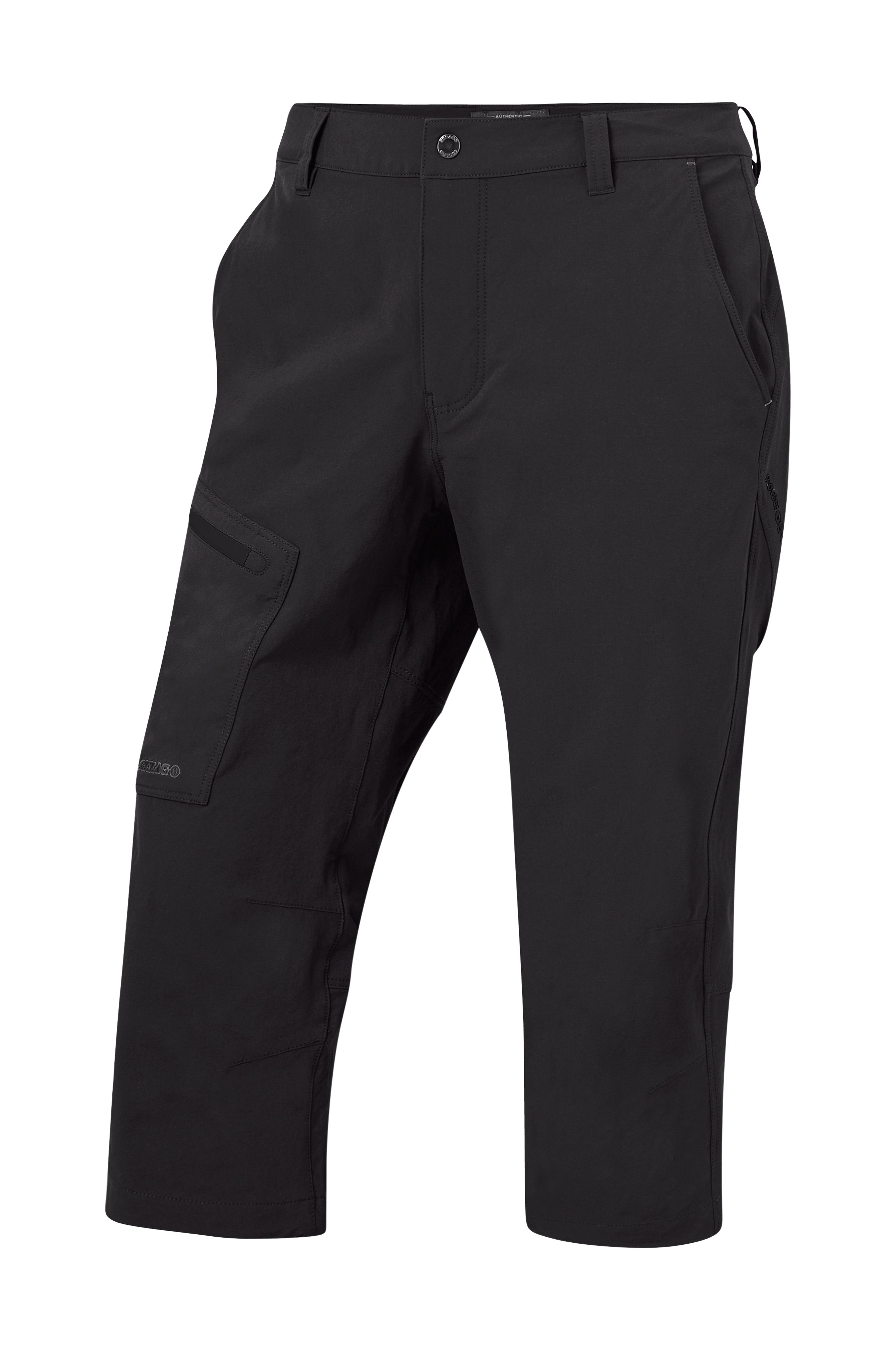 Bekväma capribyxor i stretch- och Fast Dry material som håller fukten borta från huden. Byxorna har två frontfickor, två bakfickor med dragkedja samt en benficka med dragkedja. Linning med hällor och tryckknapp. Gylf med dragkedja. Dragsko med stoppers i bensluten. Beninnerlängd ca 50 cm i stl M.