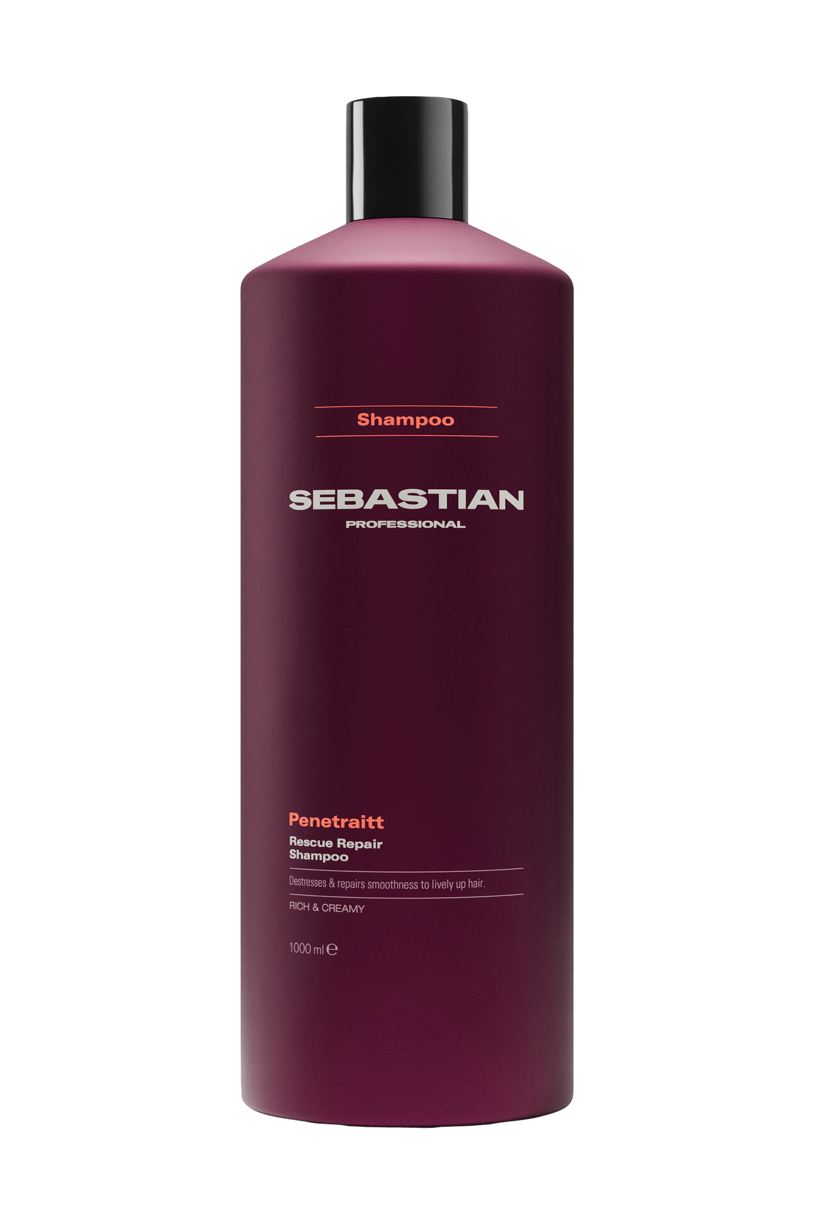 Sebastian Professional Penetraitt Rescue Repair Shampoo, ett rikt och krämigt schampo för stressat, skadat hår. Denna formula är en räddningsaktion för ditt hår och ger rengörande näring med D-panthenol, som reparerar skador och ger jämnhet och glans för ett återupplivat hår.