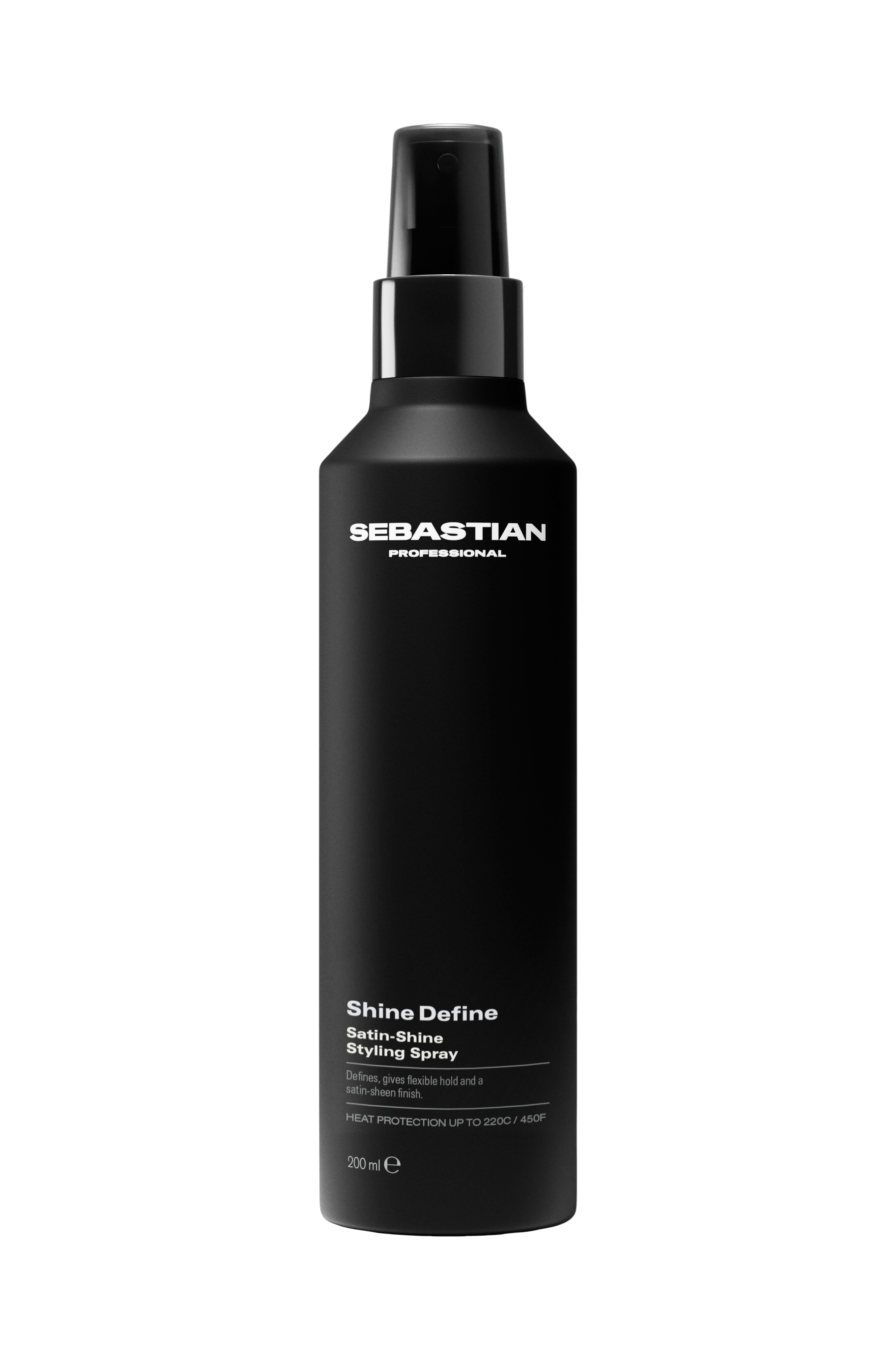 Sebastian Professional Shine Define Satin-Shine Styling Spray är en mångsidig spray för flexibel kontroll, satinfinish och skydd mot heta verktyg (upp till 220C / 450F). Denna formulas satin-glans finish låter dig forma din värld, och den älskar alla hårtyper.