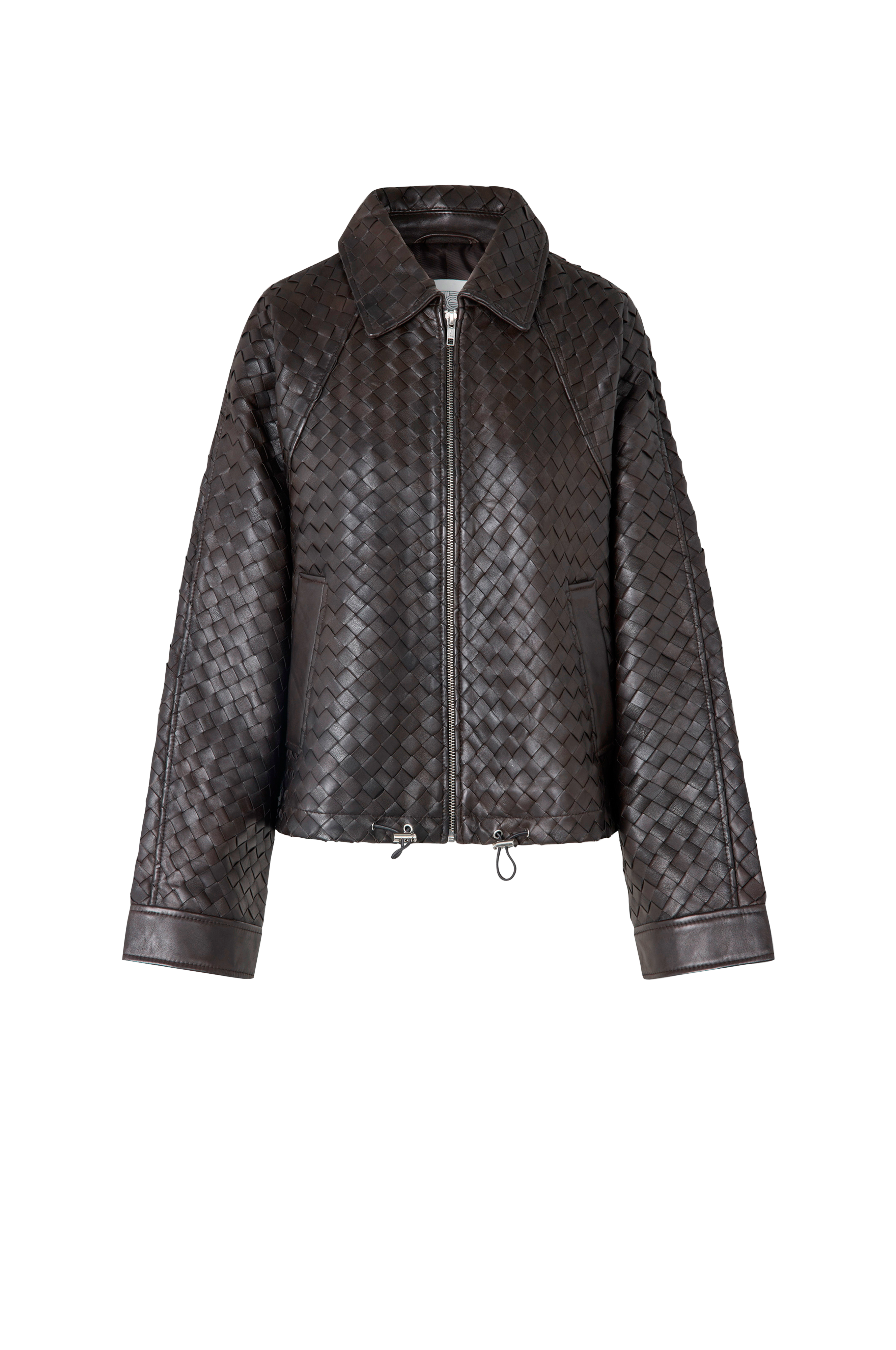• Jacka i läder med flätad design