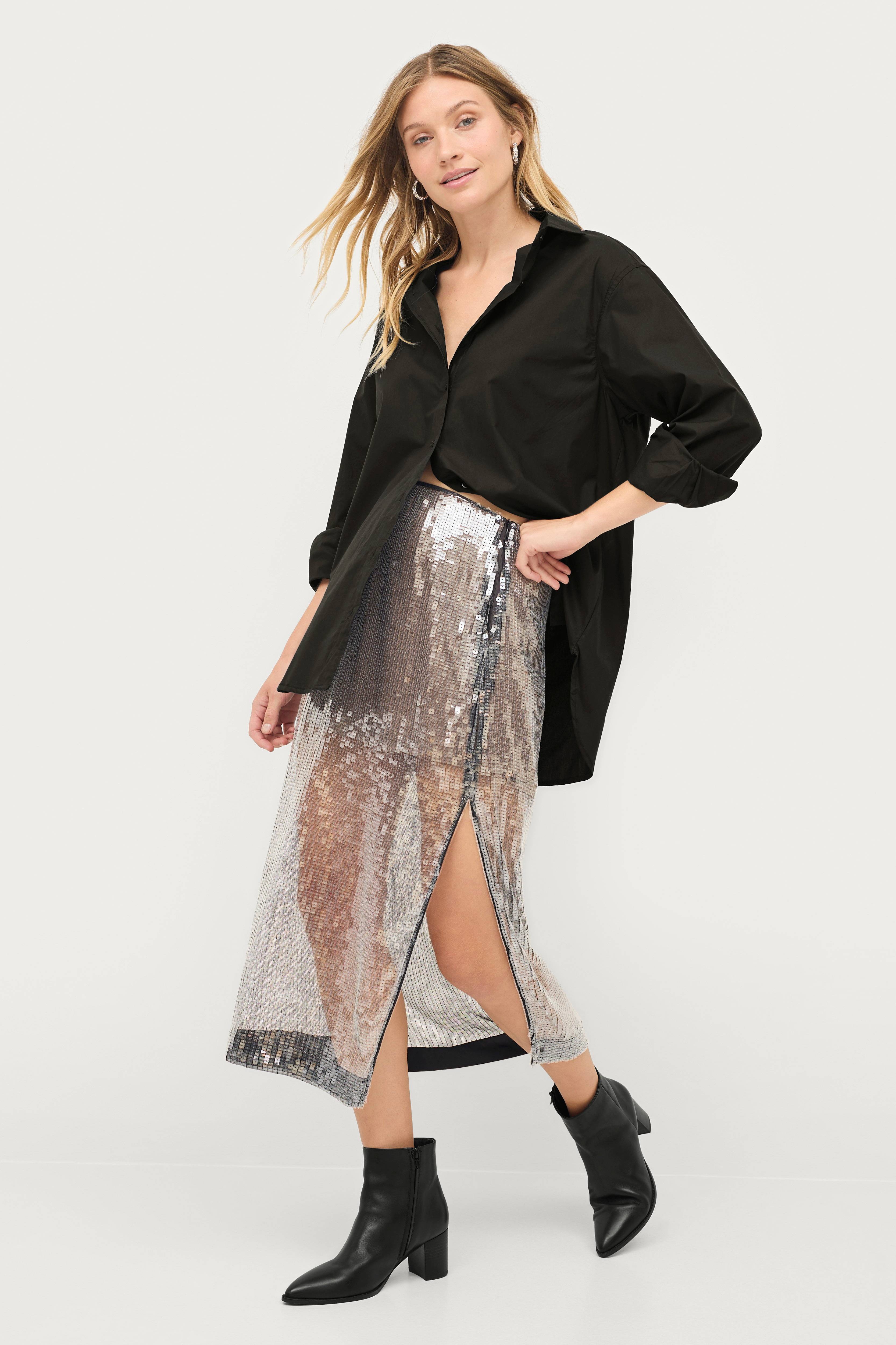 • Lång, paljettbroderad modell i mesh