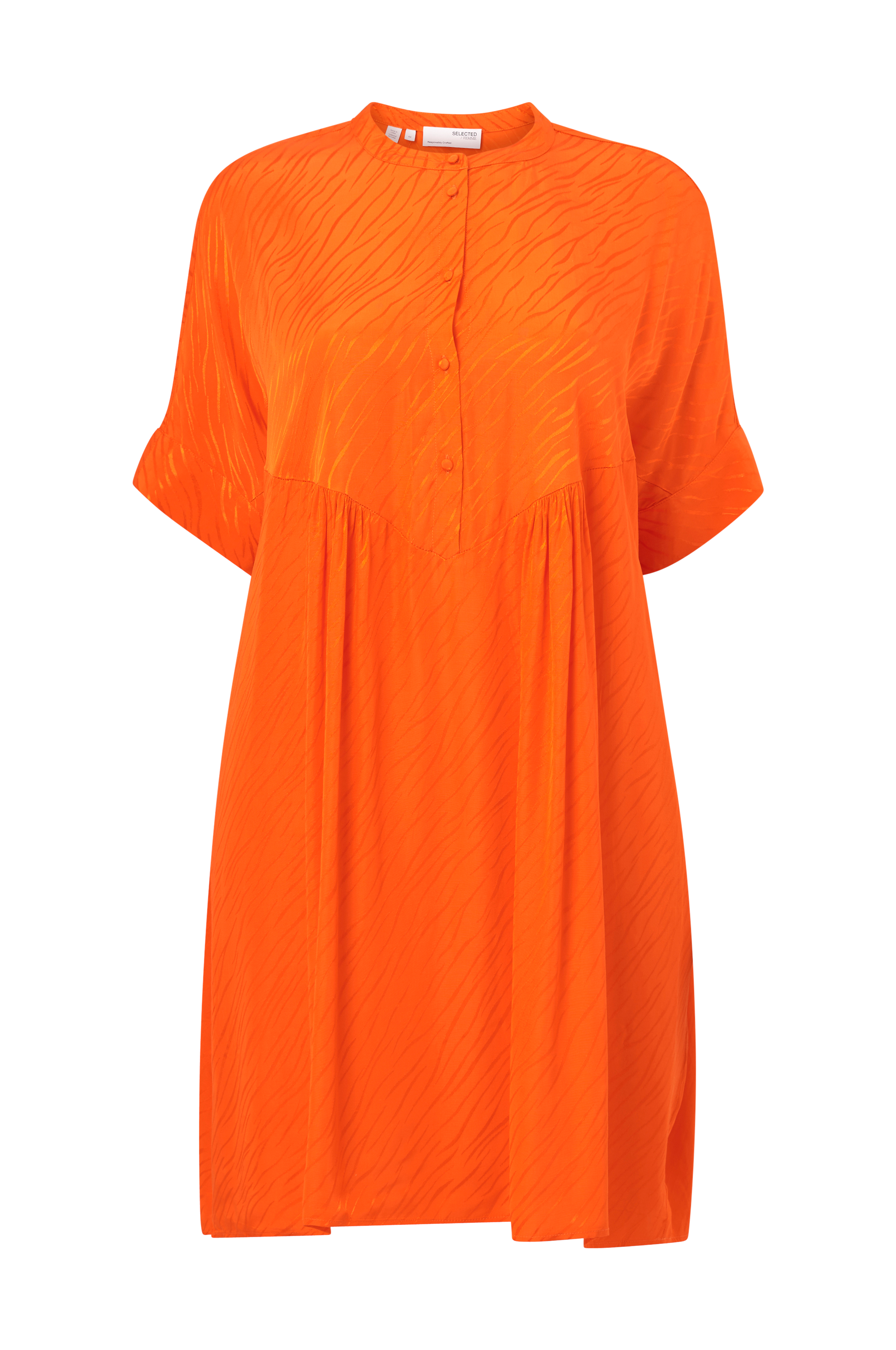 • Knappar upptill fram• Korta, vida ärmar• Lös passform• Rynk fram• Kvalitet med lyster• Plusstorlekar• Längd: 104 cm i storlek 44