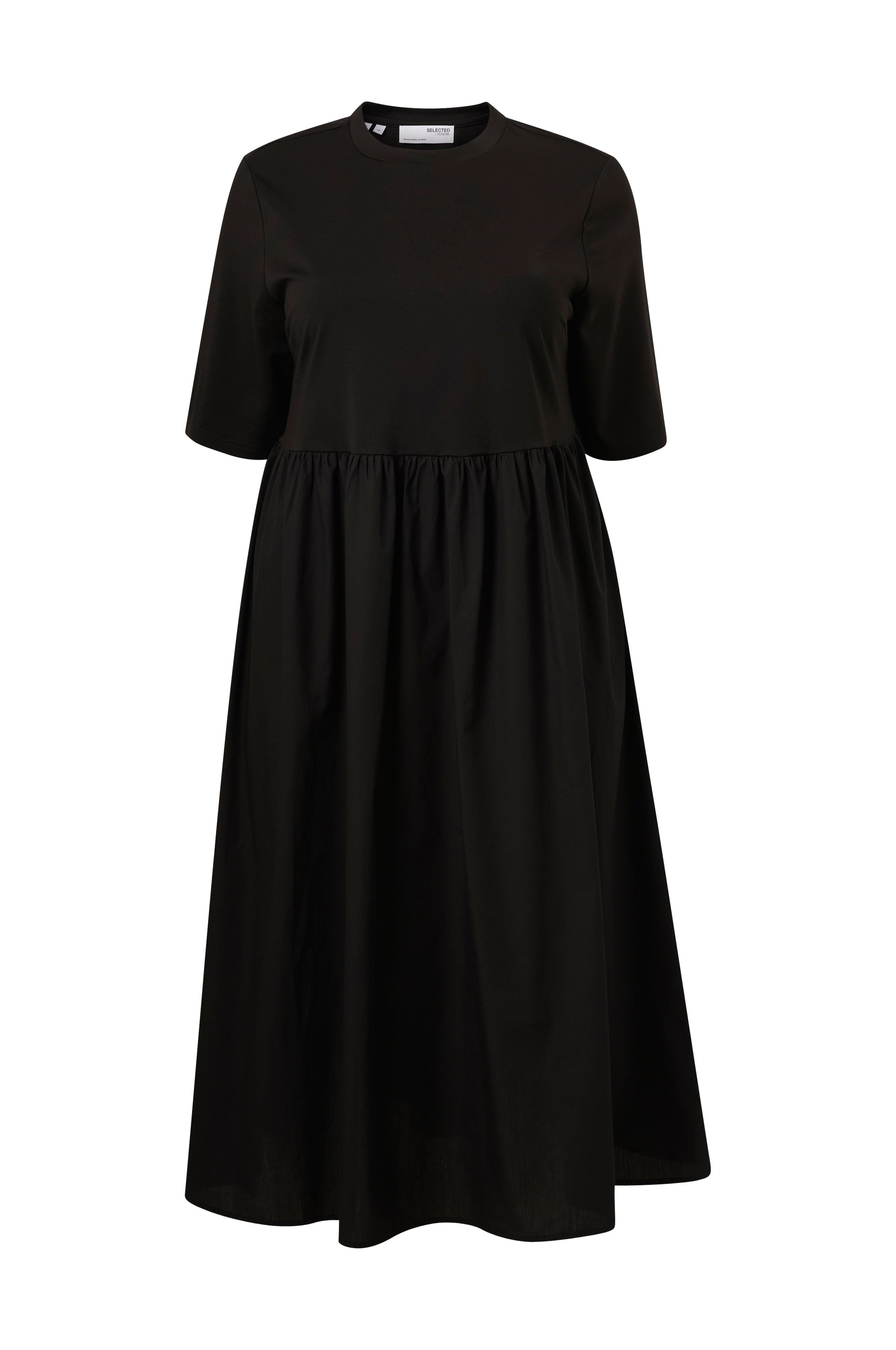 • Överdel i trikå • Halvlånga ärmar • Utställd kjol • Plusstorlekar • Längd: 125 cm i storlek 44 • Produkten innehåller ekologisk bomull som är odlad utan kemiska bekämpningsmedel, konstgödsel och genmodifierade grödor (GMO). Det innebär en mer hälsosam arbetsmiljö för bönder och bättre jordmån.
