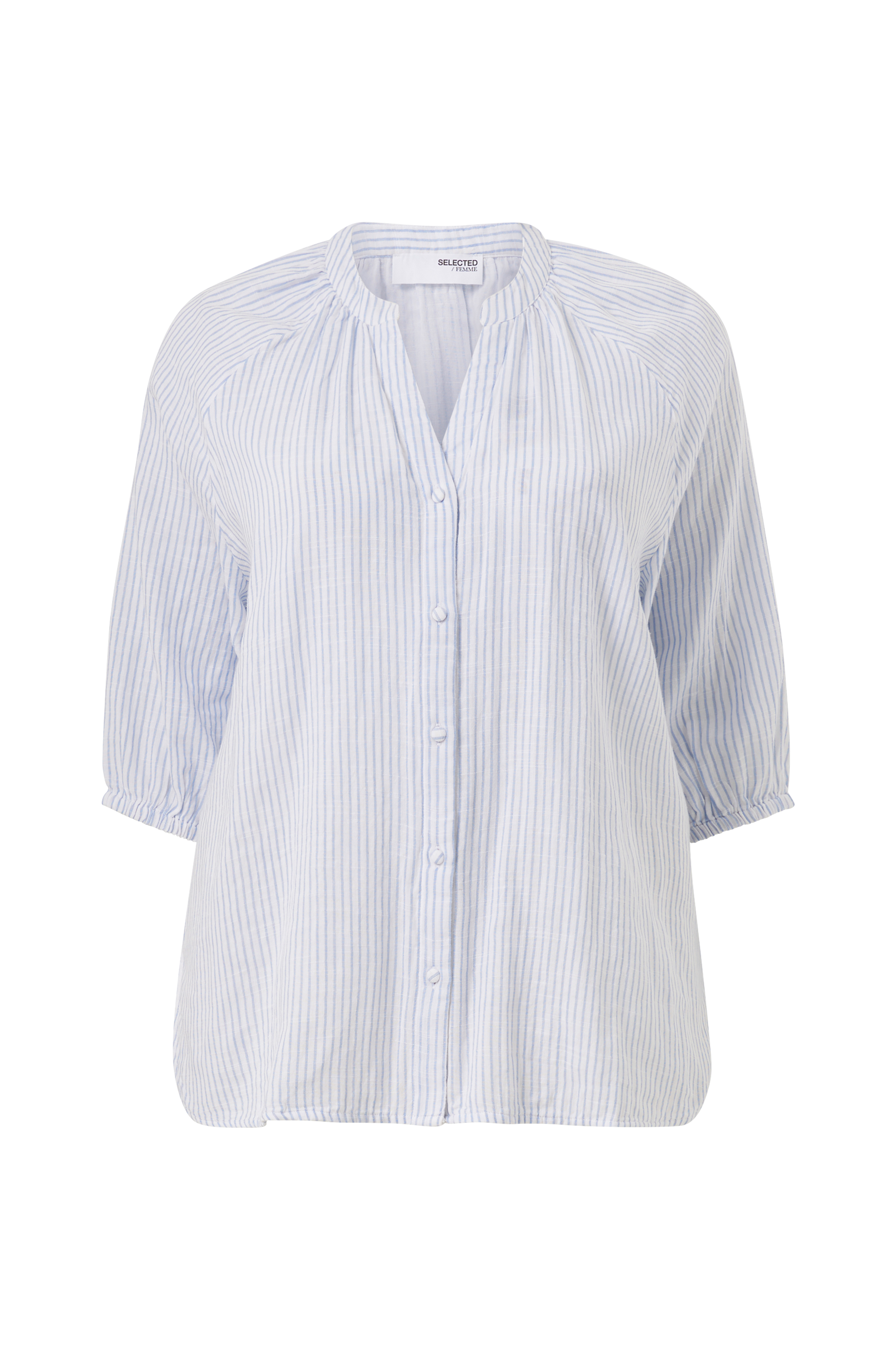 • Randig skjorta i bomull • Rund krage • Halvlånga ärmar med resår i ärmsluten • Textilklädda knappar • Rundad nederkant • Produkten innehåller ekologisk bomull som är odlad utan kemiska bekämpningsmedel, konstgödsel och genmodifierade grödor (GMO). Det innebär en mer hälsosam arbetsmiljö för bönder och bättre jordmån.