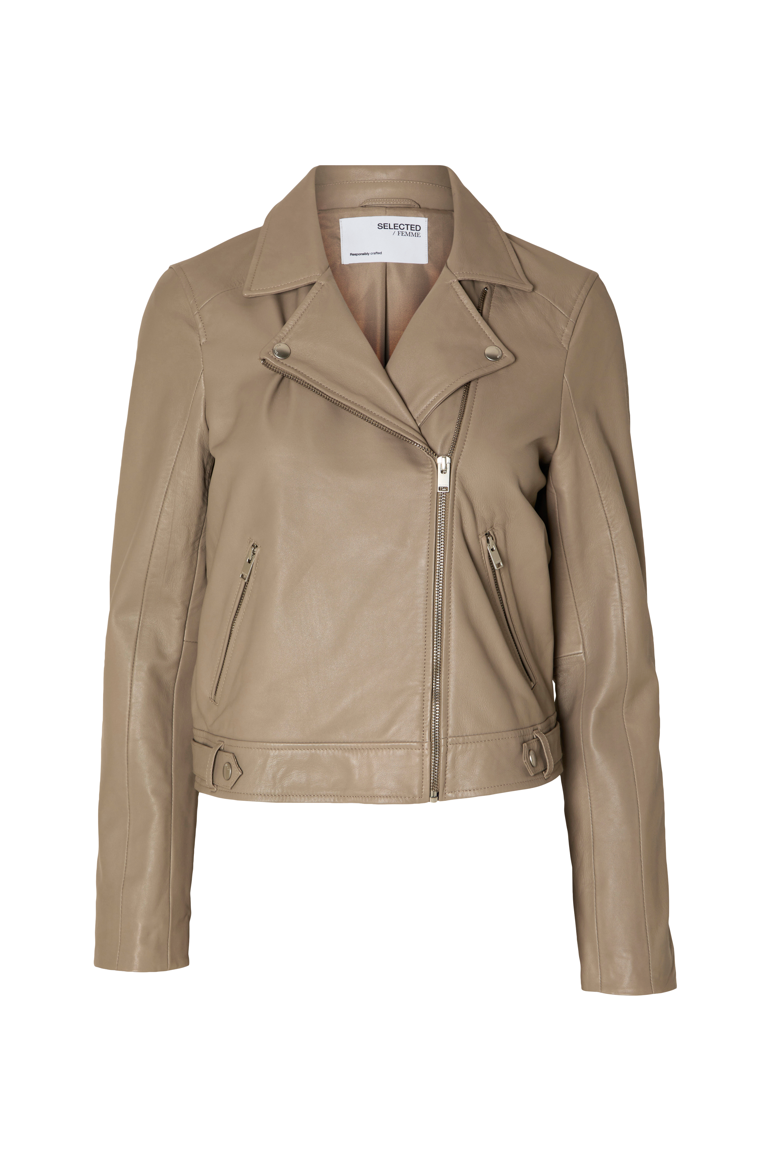 Bikerjacka slfKatie Leather Jacket från Selected Femme i mjukt skinn med klassiska detaljer som asymmetrisk dragkedja, dragkedjefickor, slejf med tryckknapp i nederkant och dragkedja i ärmslut. Fodrad i tunn, vävd kvalitet. Längd ca 52 cm i stl 36.