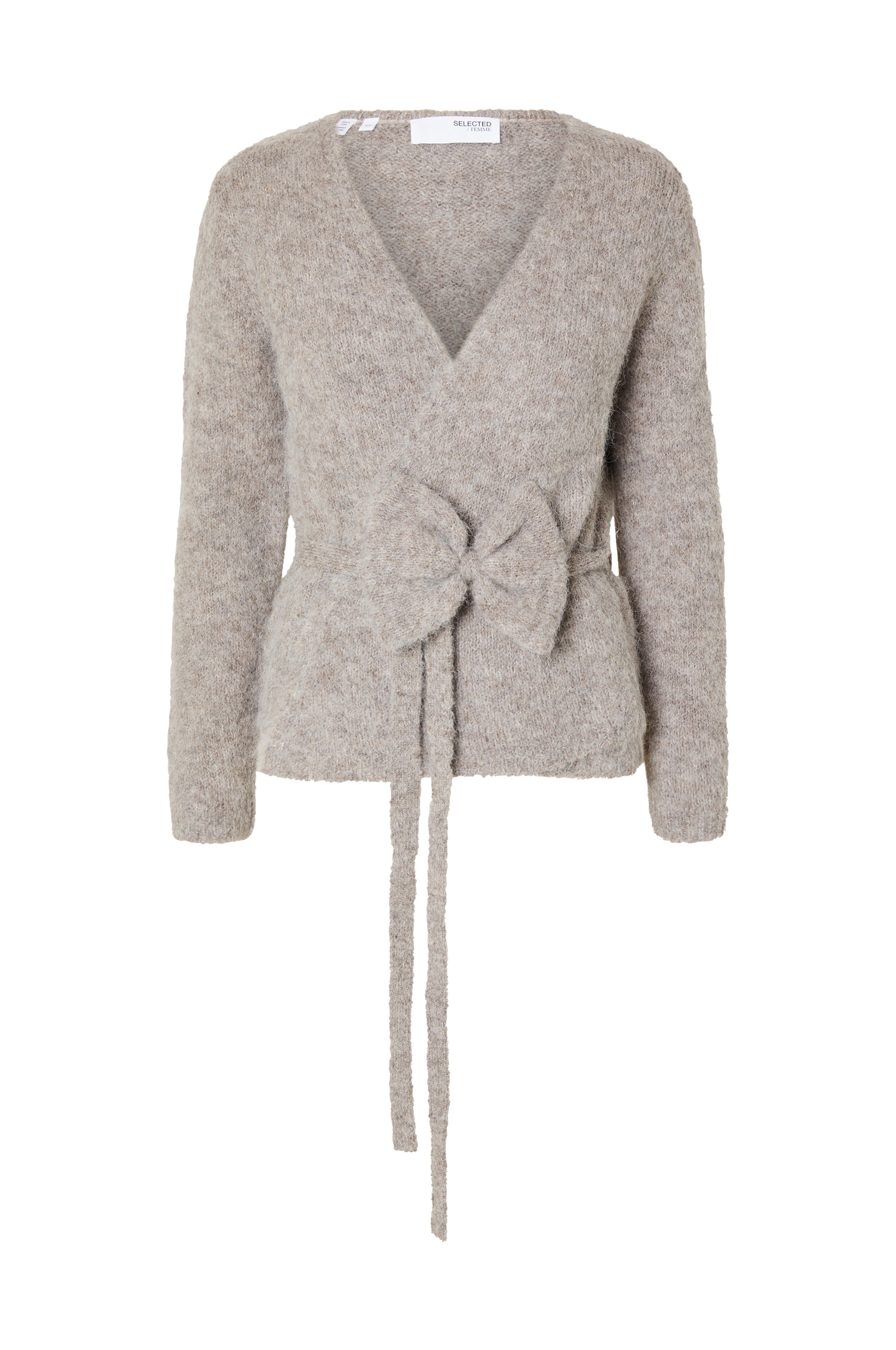 • Omlottdesign med stickat knytband i midjan• Lång ärm