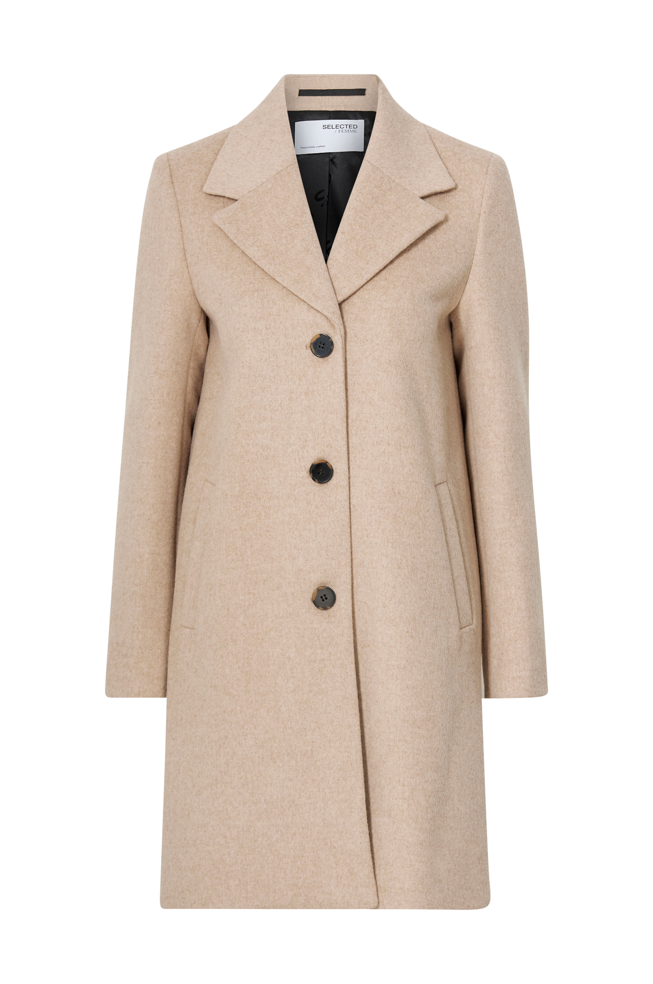 • Klassisk modell • Rak passform • Krage med slag • Två fickor • Gjord av ullmix • Längd: 93 cm i storlek 36 • Produkten innehåller återvunnen ull som kräver mindre mängd kemikalier och vatten vid framtagning. Produkten har mindre miljöpåverkan genom att resurserna bevaras och avfall tas tillvara.
