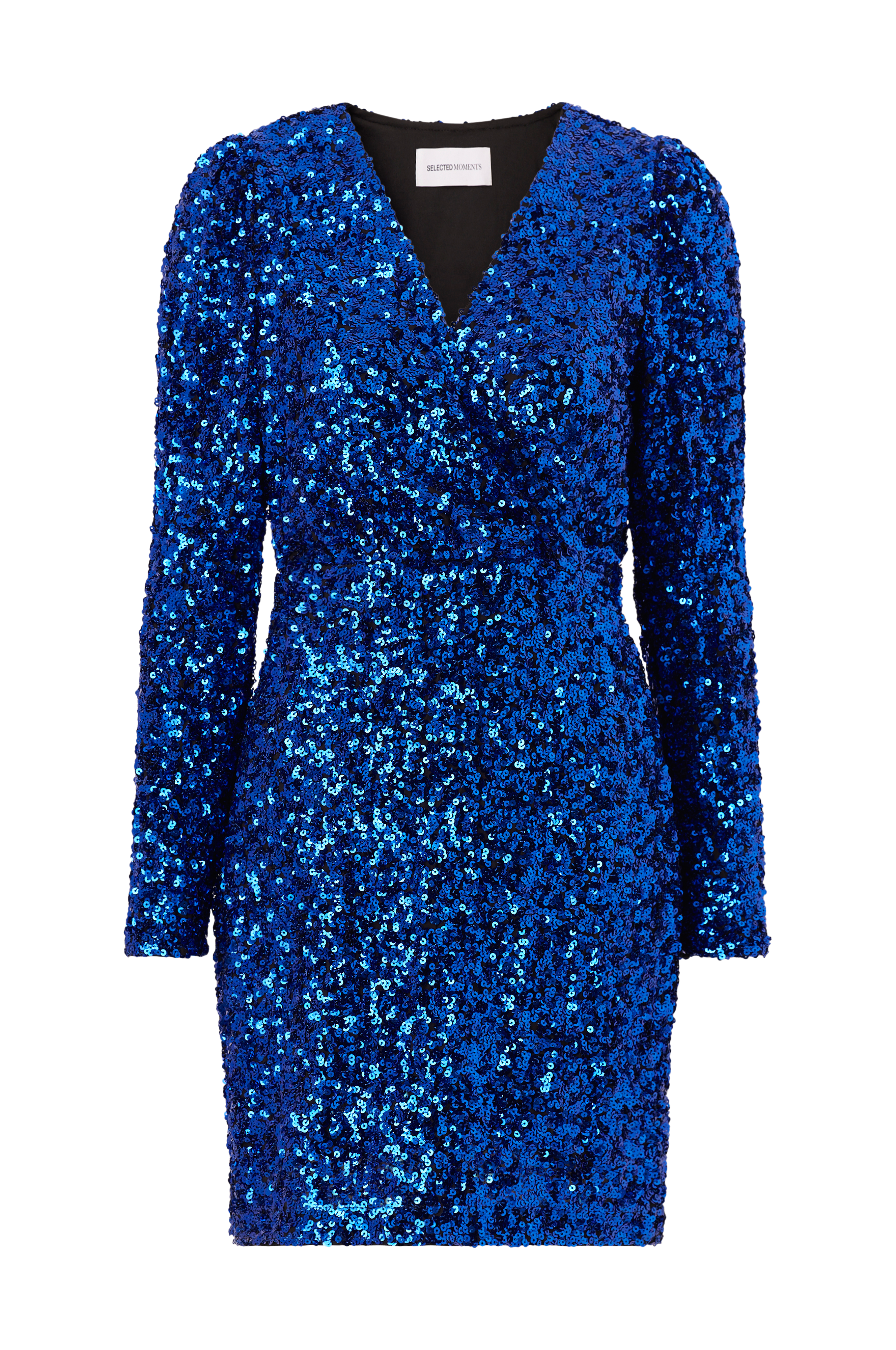 • Festklänning med paljetter• Omlottdesign upptill• Långa ärmar• Dragkedja i ena sidan• Avskärning i midjan• Fodrad• Längd: 90 cm i storlek 36