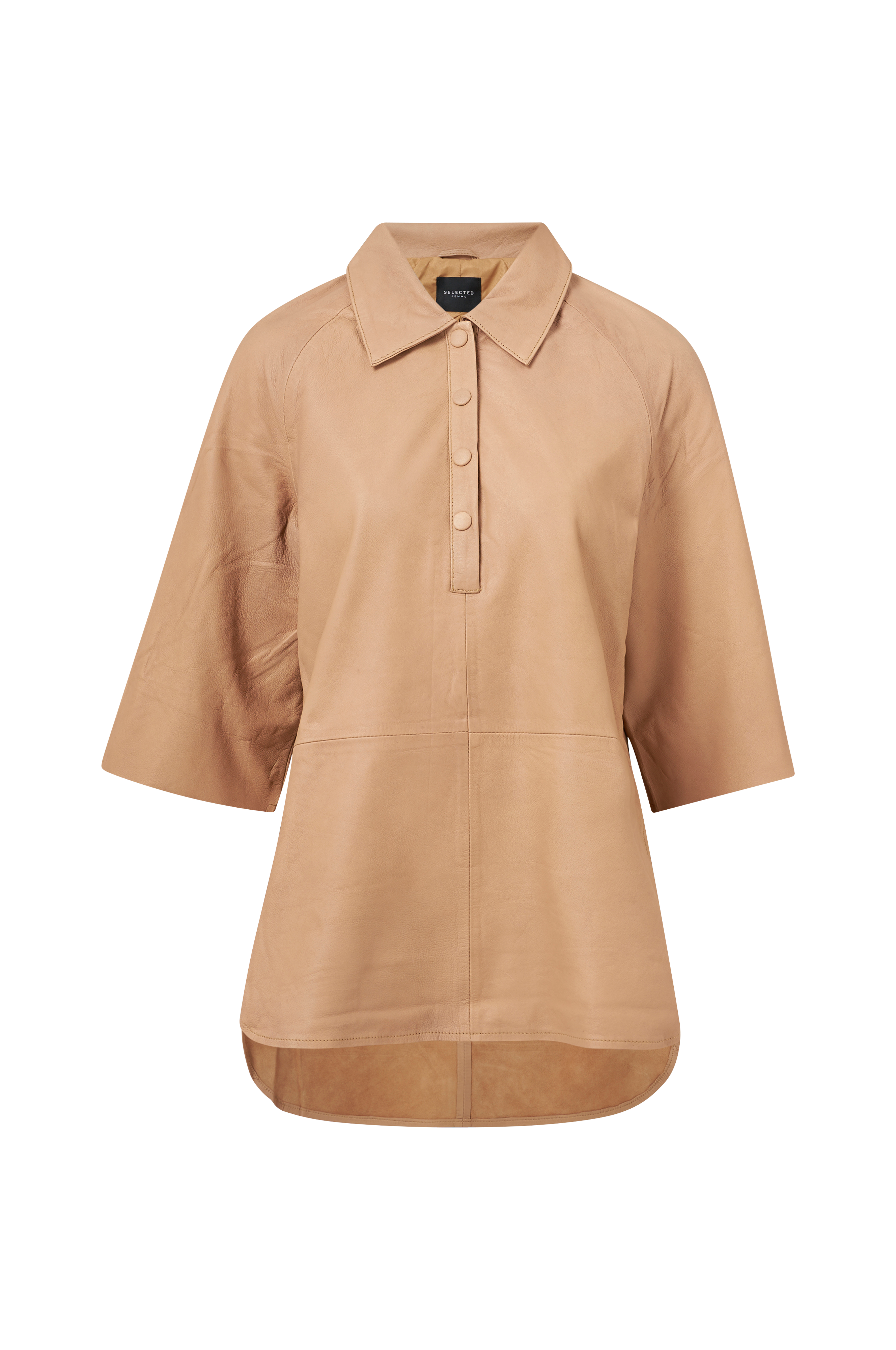 Skinnskjorta slfAnnabella 3/4 Leather Shirt från Selected Femme i mjukt, följsamt skinn. Tryckknappar upptill fram och 3/4-långa, avklippta ärmar. Rundade sidor med slitsar nedtill. Skjortan är längre bak. Fodrad upptill.