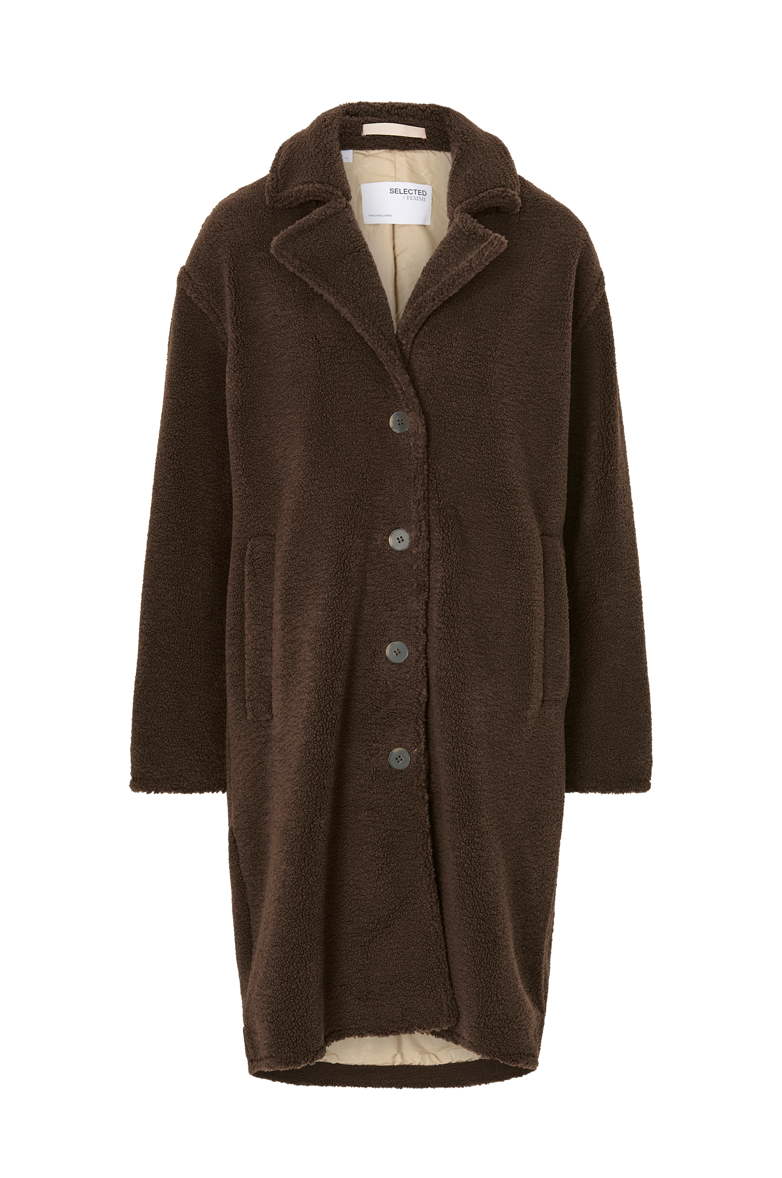 • Kappa i teddy• Knappar fram• Krage med slag• Två fickor• Längd: 101 cm i storlek 36