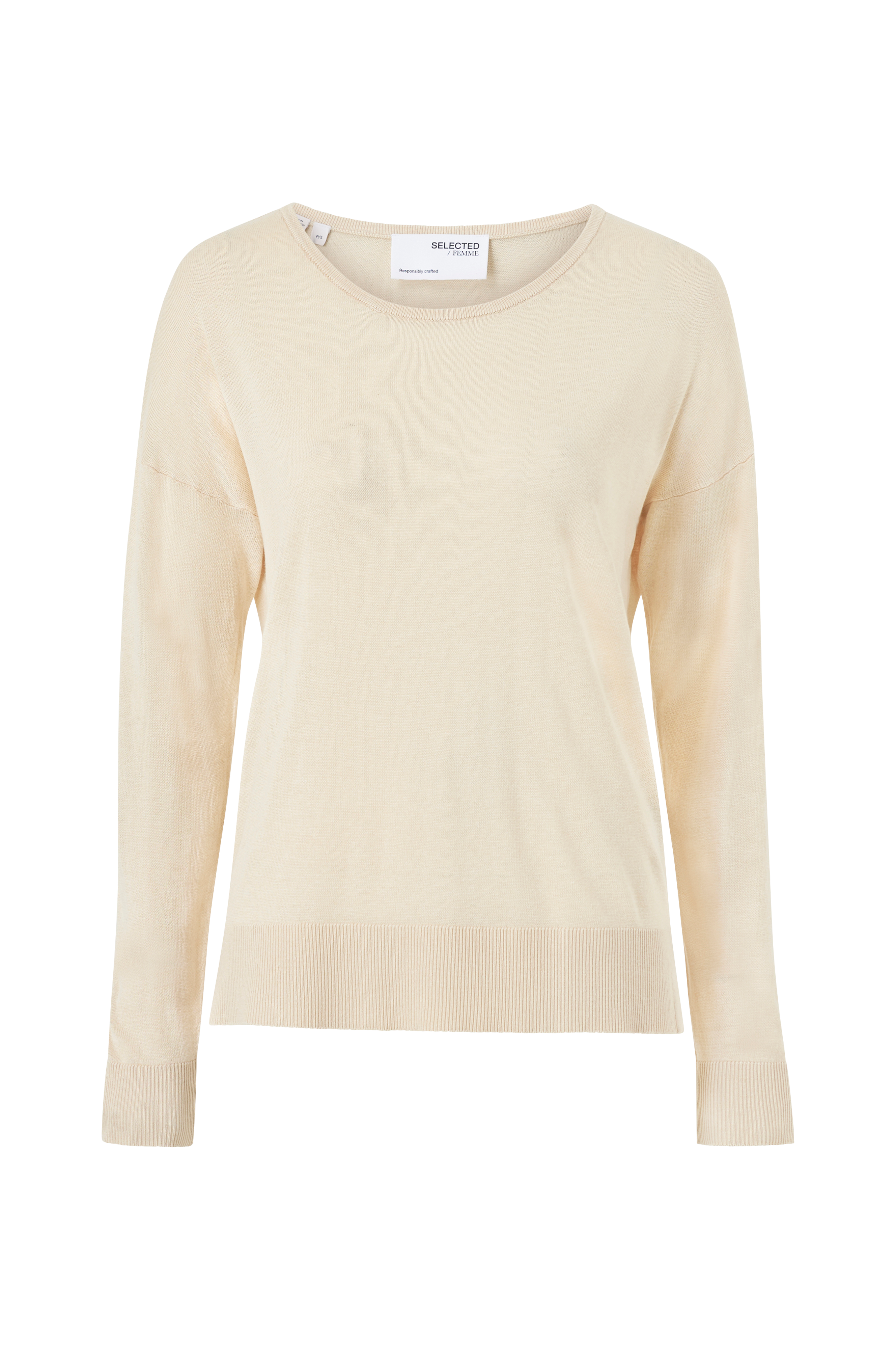 Tunn, finstickad tröja i mjuk viskosmix. Smal ribbkant i halsen, nedhasade axlar och bred ribb och sidosprund nedtill.