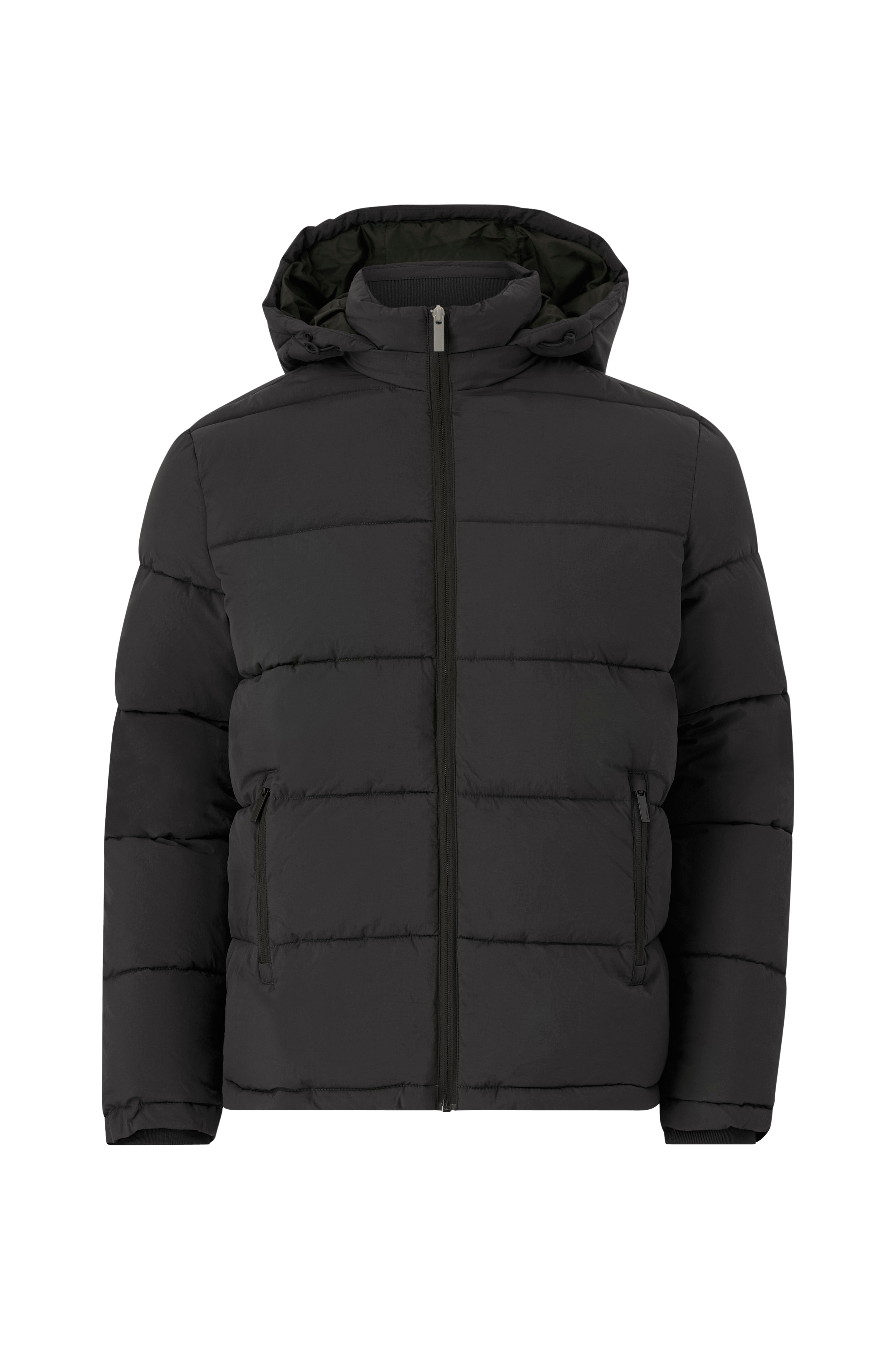 • Quiltad, vadderad jacka• Justerbar, avtagbar huva• Hög krage med ribbad insida• Dragkedja• Två fickor med dragkedja• Två innerfickor• Ribbmuddar i ärmsluten• Dragsko i nederkanten• Längd: 70 cm i storlek M