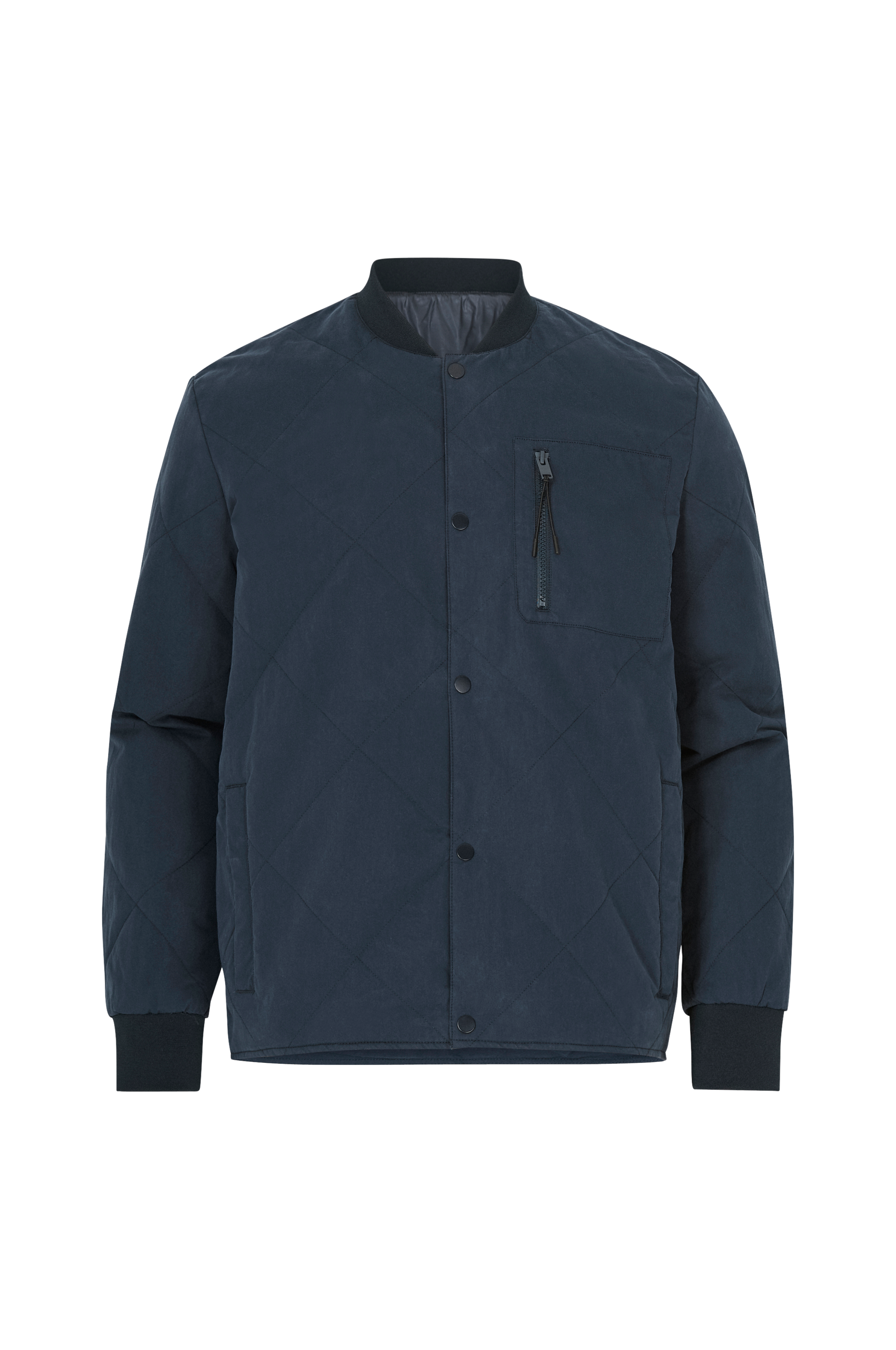 Quiltad och vadderad bomberjacka med matt yta och slätt, vävt foder. Ribbad krage, tvåvägsdragkedja och tryckknappar. Två fickor nedtill med tryckknapp och en bröstficka med dragkedja. Två innerfickor, en i mesh och en med dragkedja. Ribbmuddar i ärmsluten. Längd ca 72 cm i stl M.