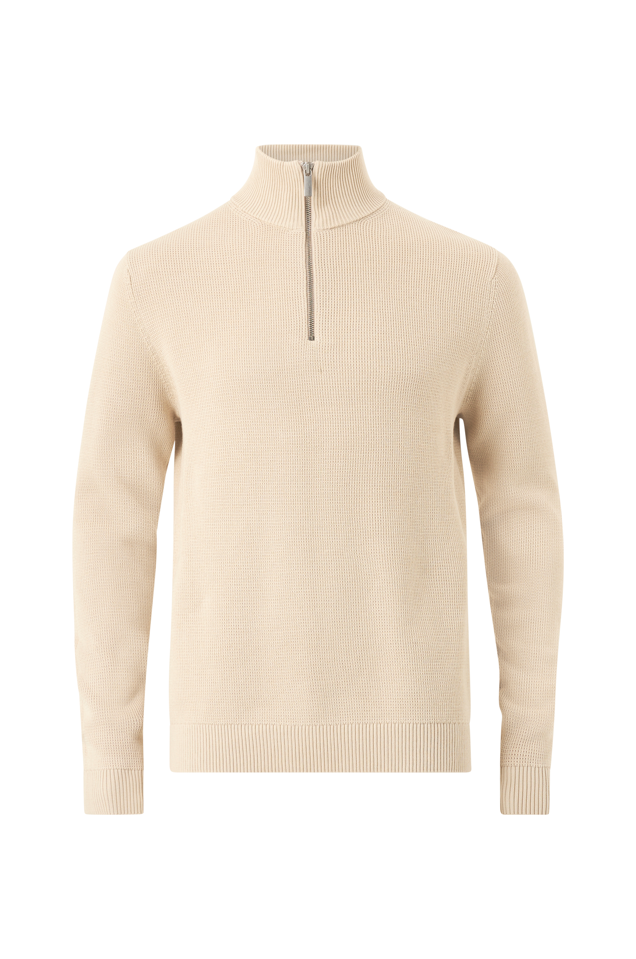 • Strukturstickad tröja• Hög, ribbstickad, rund krage• Kort dragkedja• Ribbmuddar i ärmsluten och nedtill