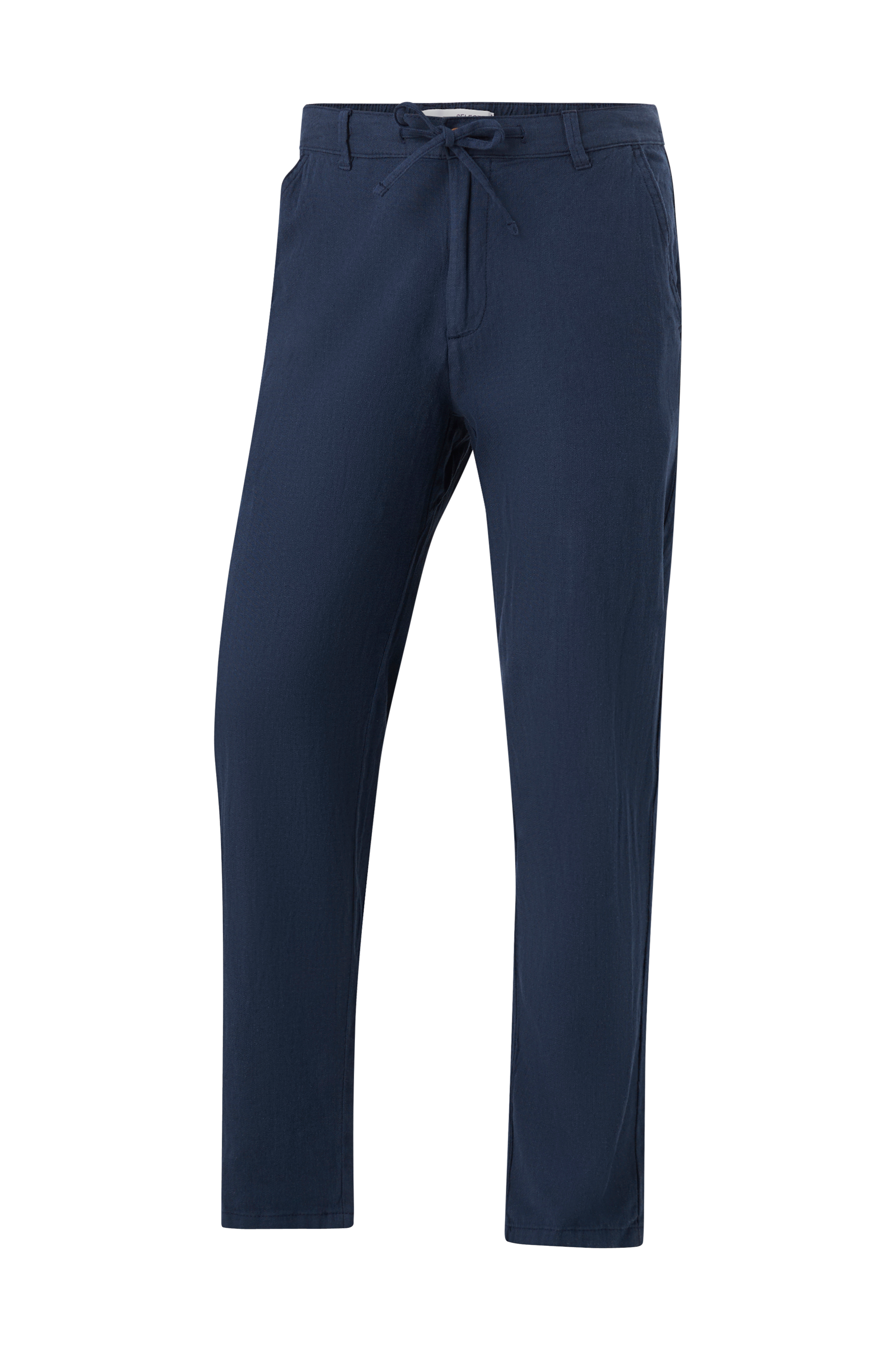 • Byxor i linnemix • Smal passform • Avsmalnande ben • Resår bak i midjan • Dragsko • Hällor • Dragkedjegylf • Två fickor fram • Två bakfickor med knapp