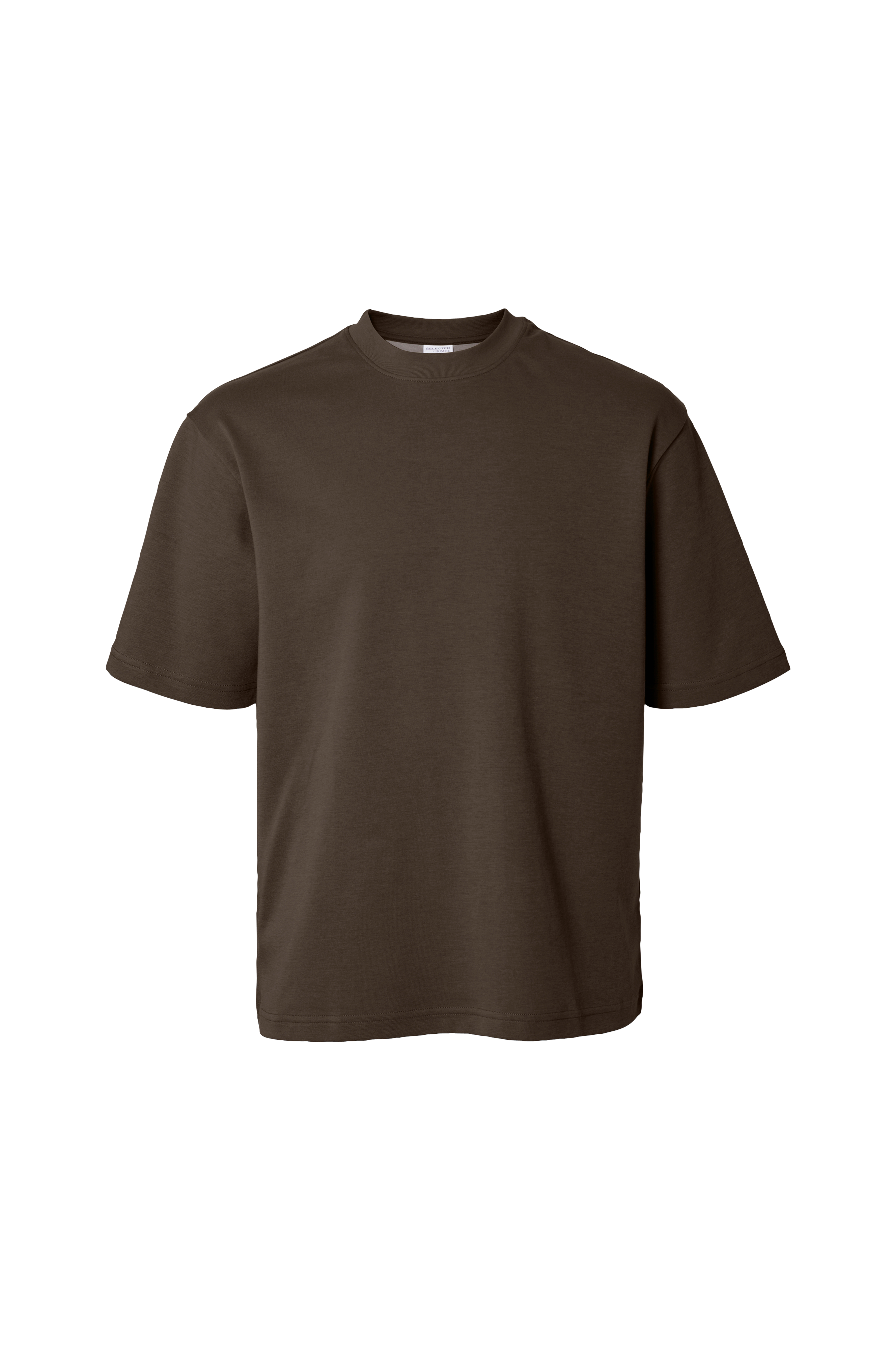 • T-shirt i bomullsmix• Rund halsringning• Lös passform