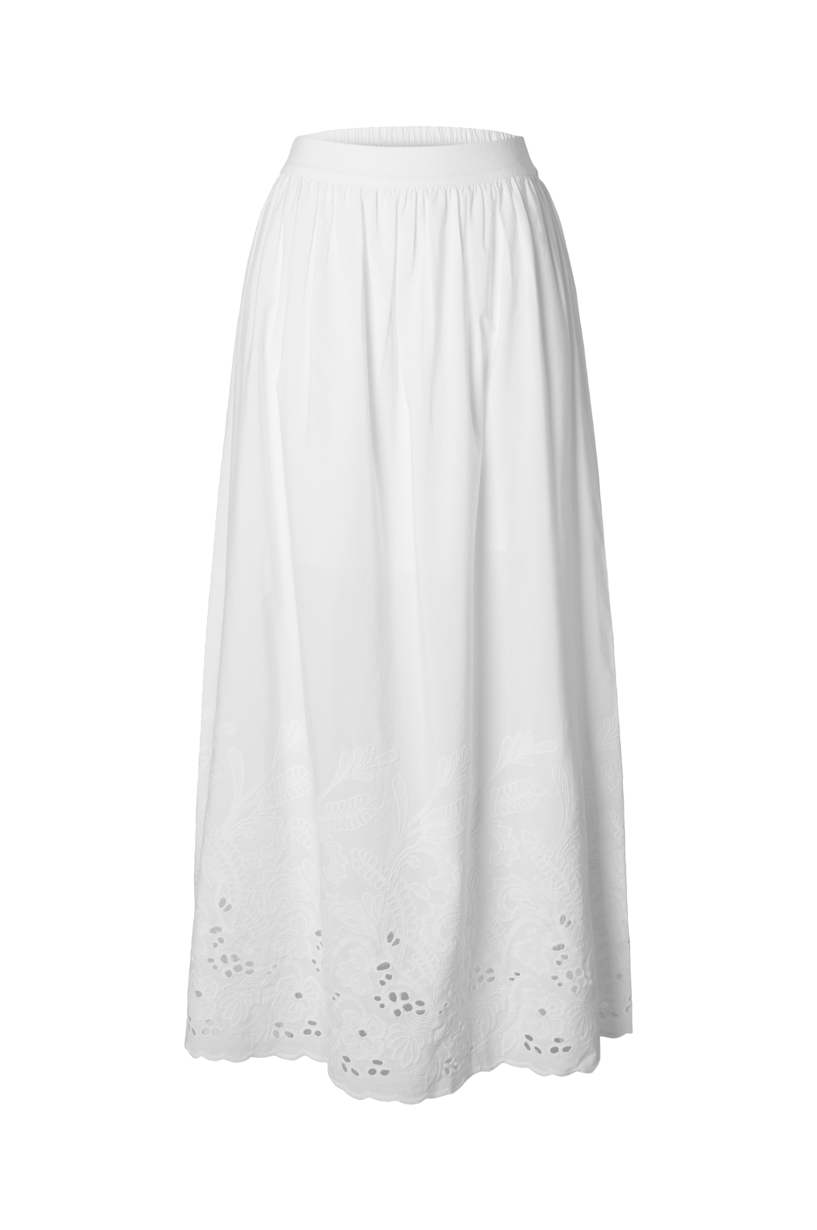• Lång, utsvängd modell• Hålbroderier nedtill• Linning med resår bak• Kort foder• Längd: 99 cm i storlek 36