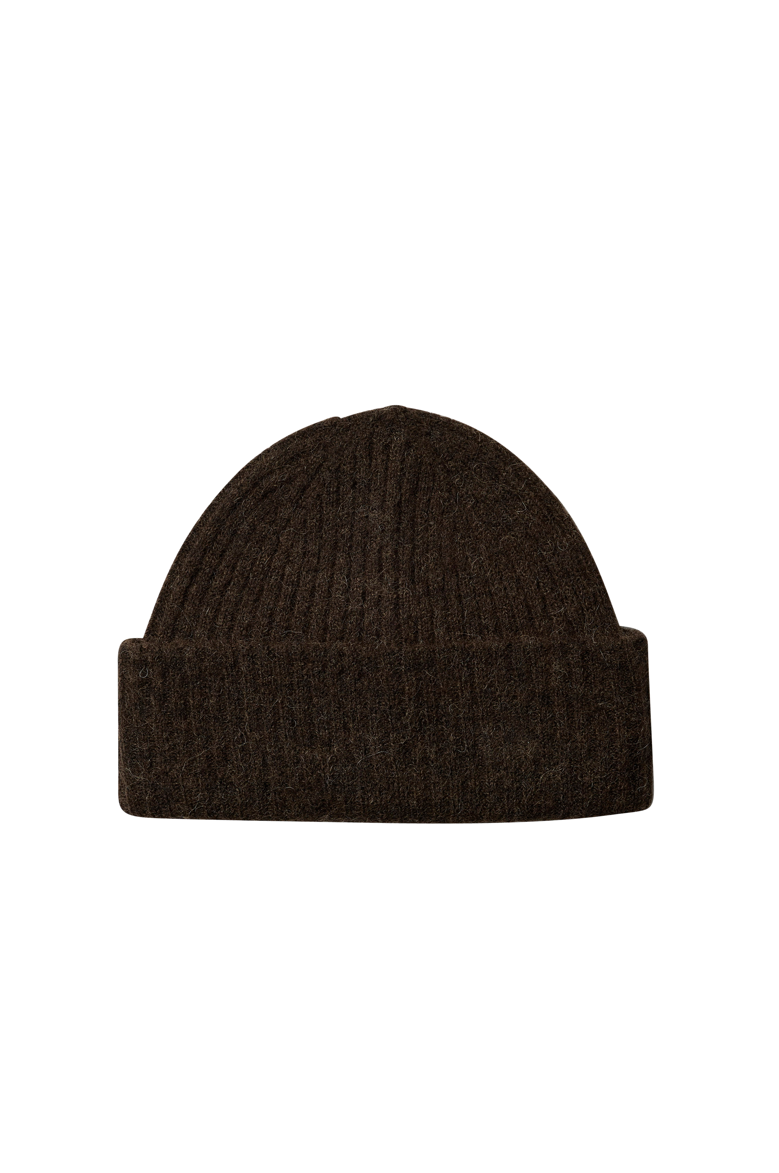 • Ribbstickad mössa i ullblandning• Uppvikt nederkant
