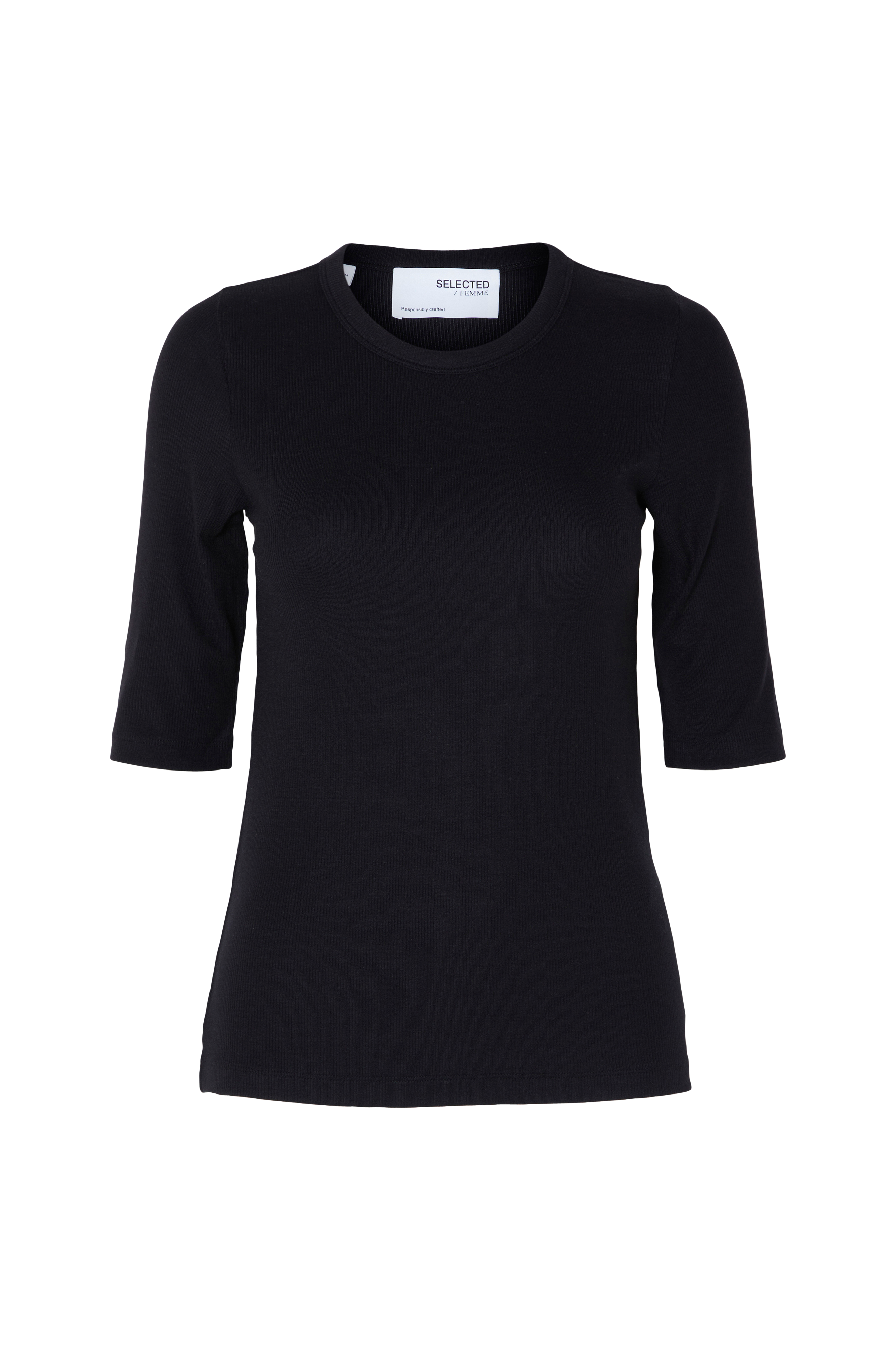 • Topp i ribbad, stretchig trikå• Rund halsringning• Halvlånga ärmar