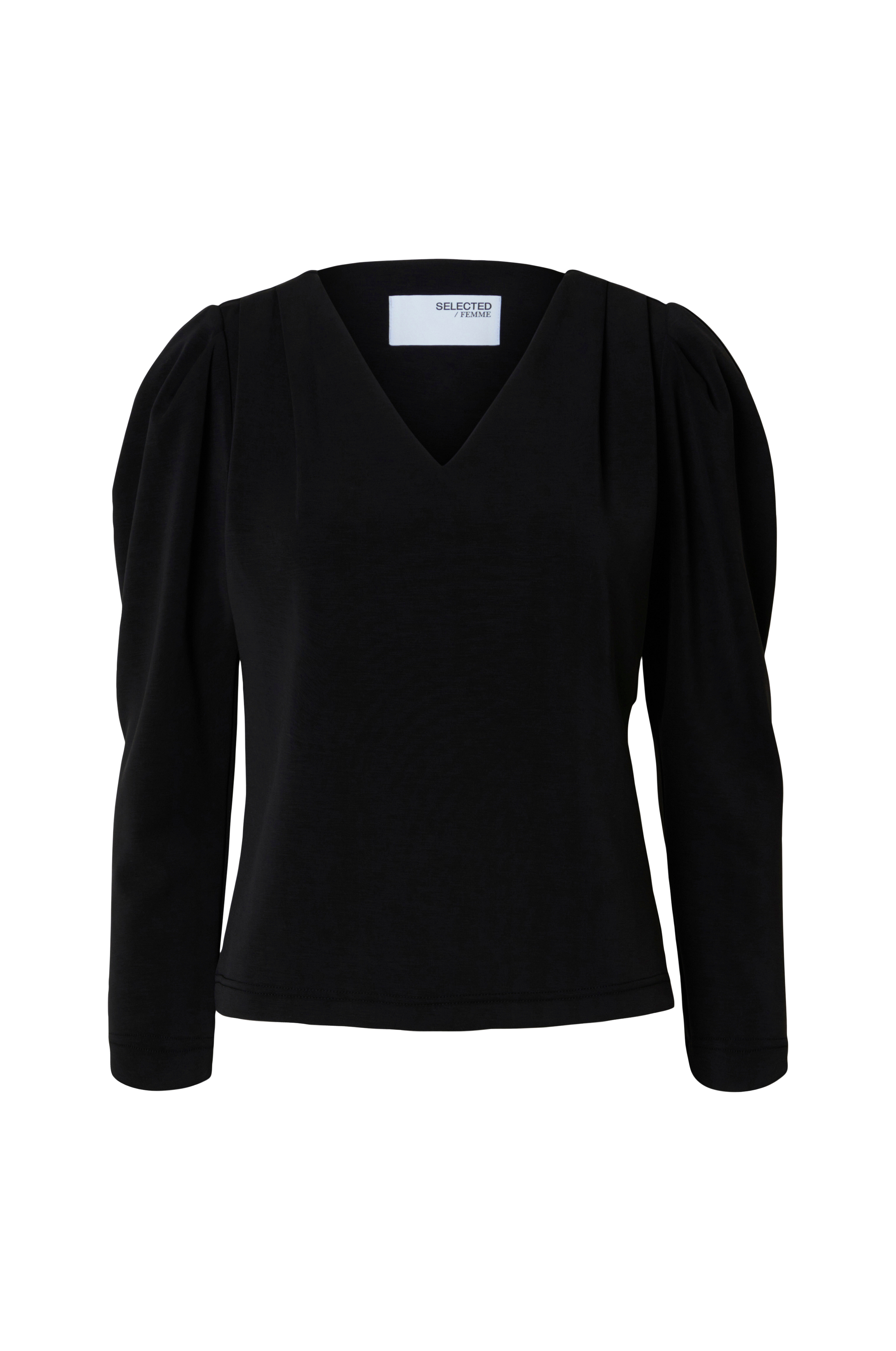 • Lätt figurformad modell i jersey• V-ringad hals• Lång puffärm