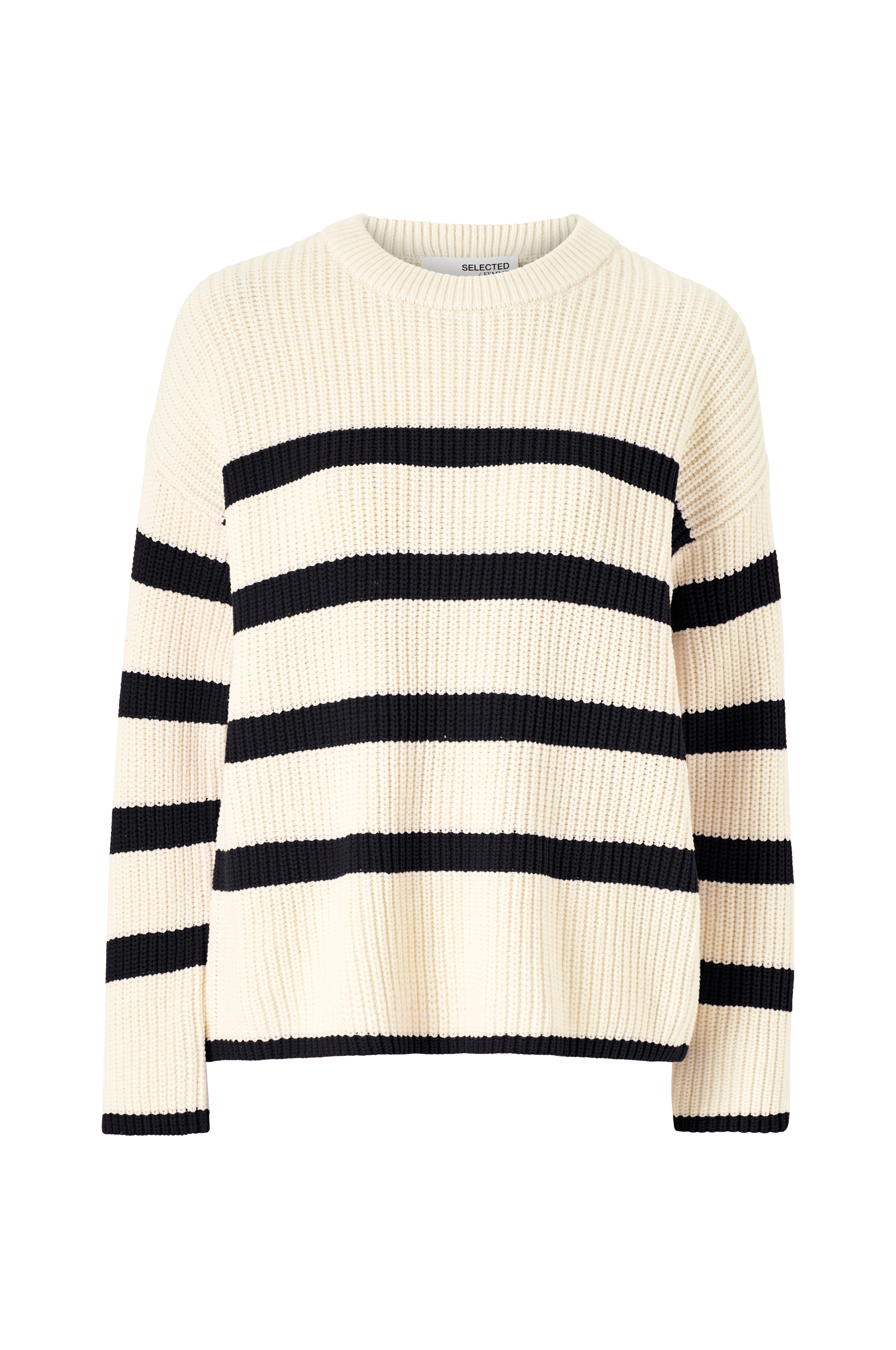 Grovstickad tröja i bomullsmix. Rund, ribbad halsringning. Nedhasade axlar.