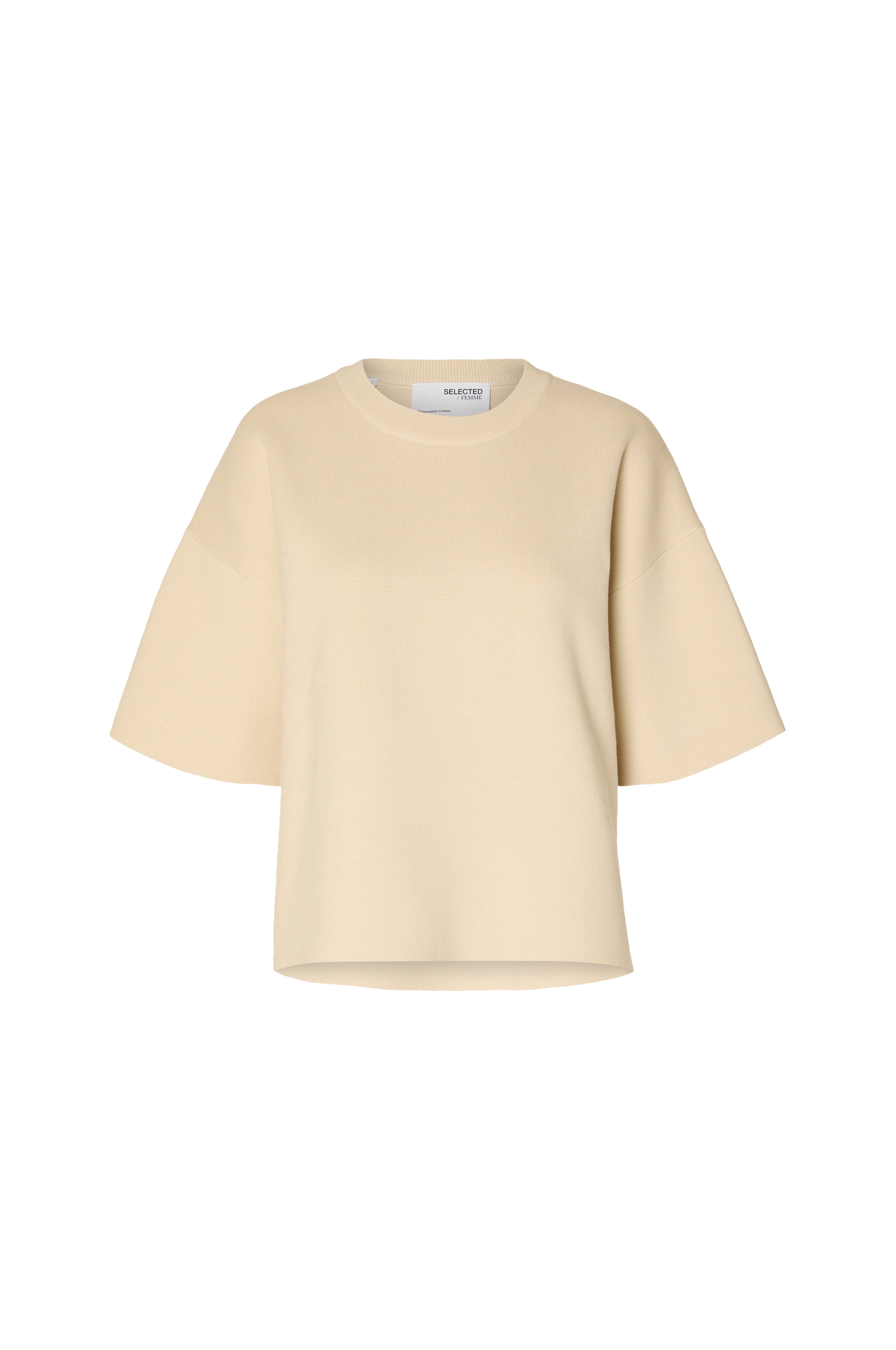 • Stickad tröja i bomull• Rak, avslappnad passform• Korta ärmar• Nerhasade axlar• Sprund nedtill i sidorna